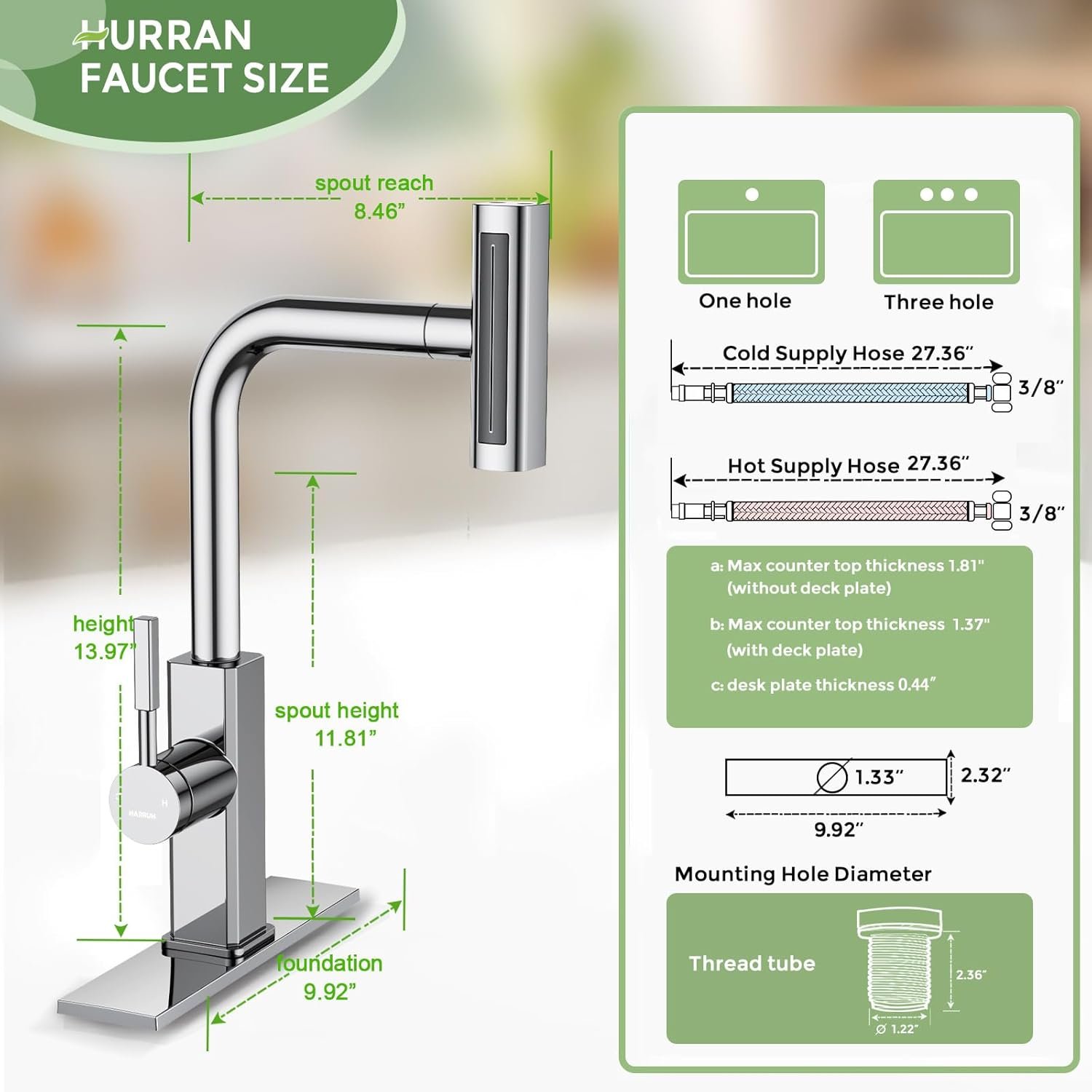 4 In 1 Function Modes: Hurran kitchen faucets have been upgraded with four water dispensing function modes: Stream, Waterfall, Sprayer and Sweep. Stream for precise water injection; Waterfall provides a steady water flow for detailed rinsing; Sweep creates a wide, powerful waterjet to clean stubborn stains. Sprayer for routine tasks like rinsing fruits; Bring you a new and versatile kitchen experience