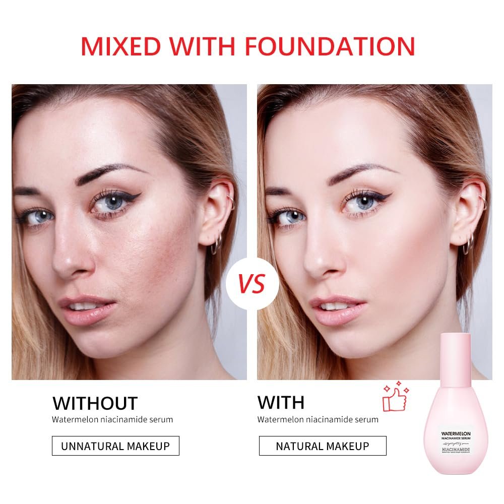 Shrink pores: Watermelon Niacinamide Face Hydrating Serum can balance sebum secretion, shrink pores, and make pores look more refined, without worrying about enlarged pores, Lightweight and easy to apply, it delivers a dewy, lightweight glow without leaving a grayish complexion.