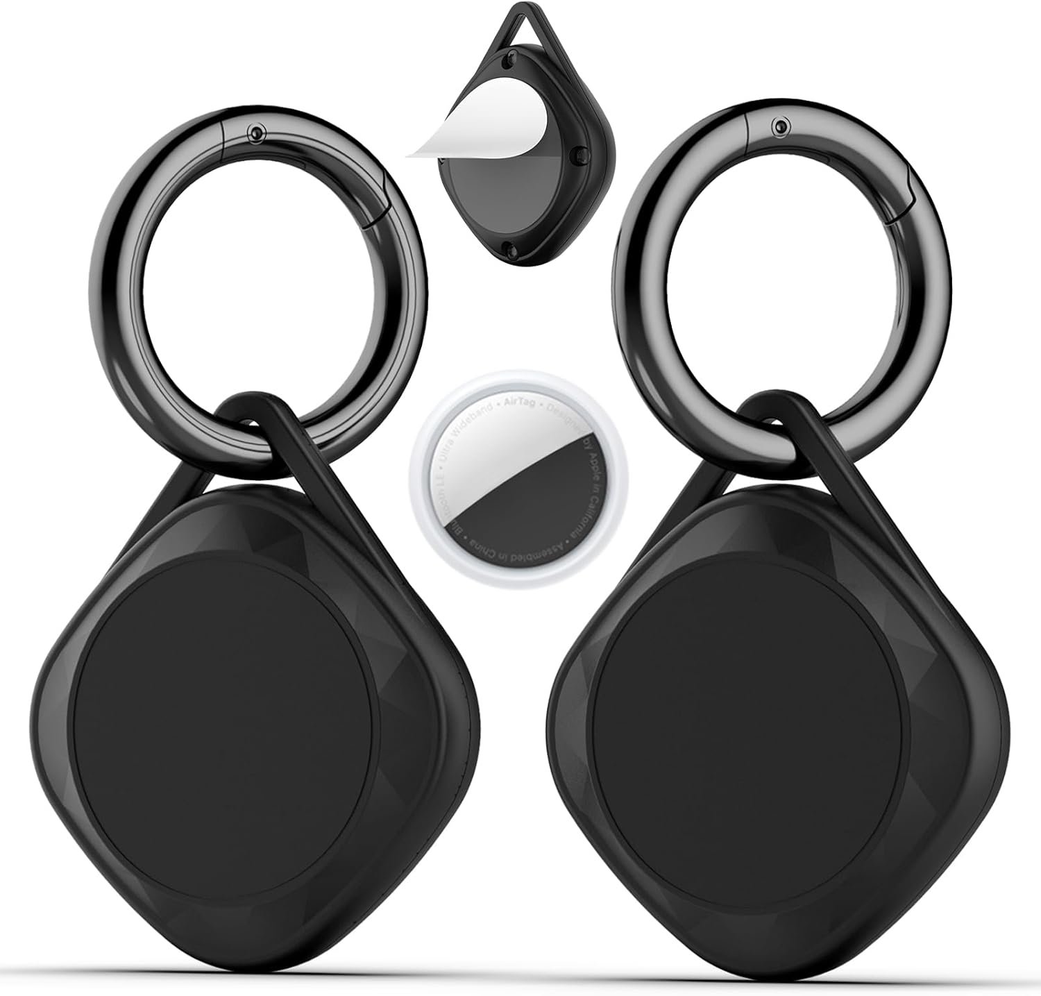 Waterproof AirTag Keychain Holder – (2 Pack) Air tag Lock Case with 3M Adhesive Compatible with Apple AirTags, Ultra Durable Protective Case with Keyring for Luggage, Key, Backpack, Collar, Black