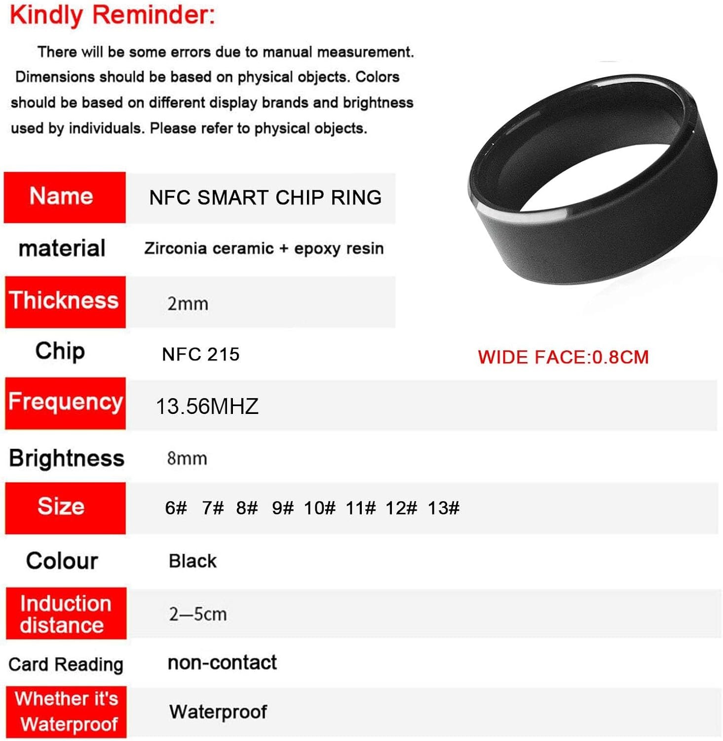 Package Includes: 1NFC smart ring