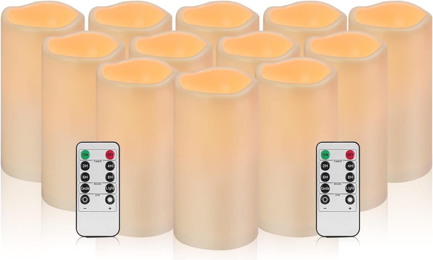 Smart Control: Includes two 10-key remote controls, which allows you to set timer on your pillar flameless candles per 2H, 4H, 6H, or 8H, while you can even time them to automatically turn on or off