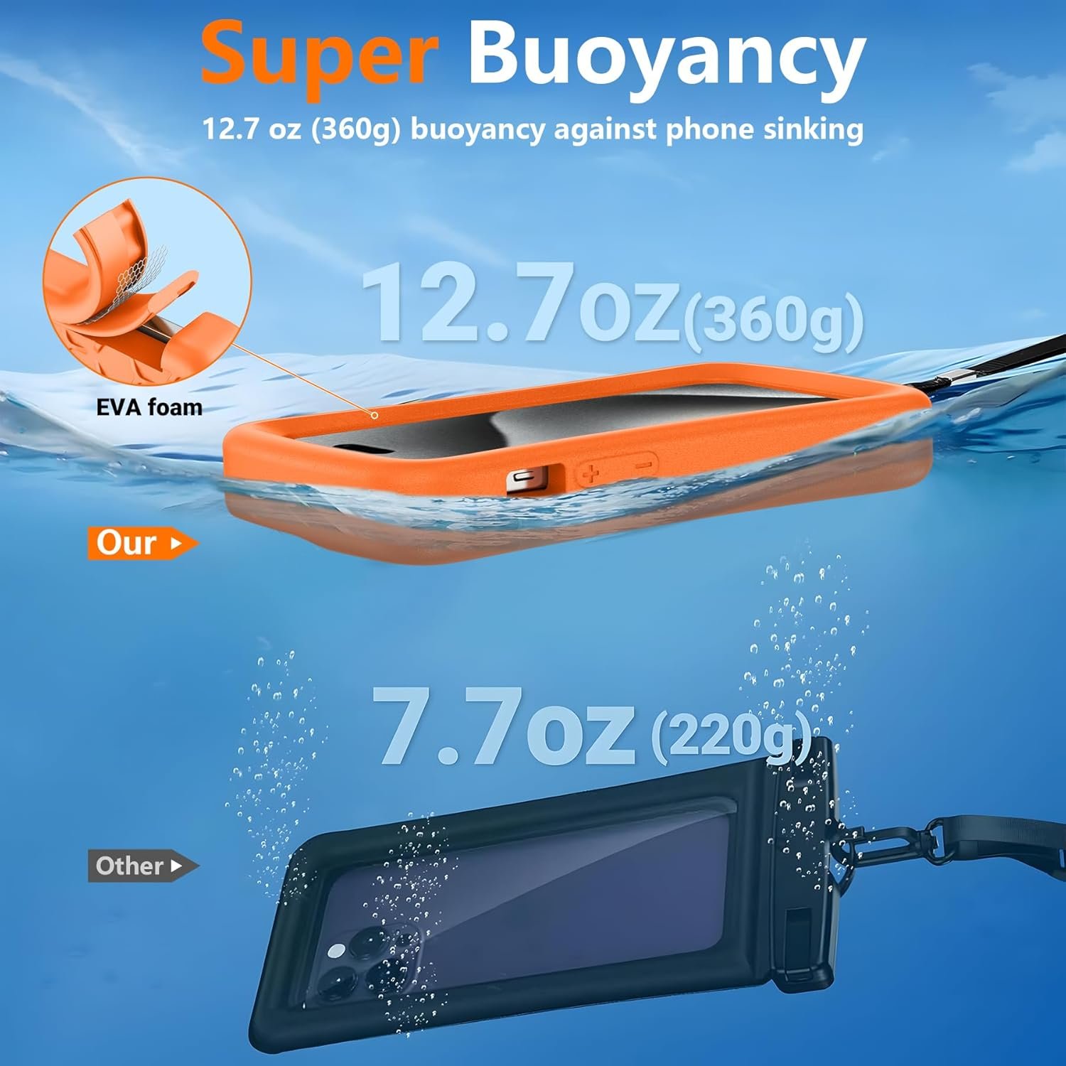 【Super Floating Force】Super buoyant allows it to float like a kayak without sinking. Even if your iphone falls into the water, our floating iphone case can bring your phone to the surface, and the bright, conspicuous orange color allows you to quickly find your phone. Add security to your Marine entertainment. Suitable for surfing, swimming, boating, rafting, fishing and other water activities.