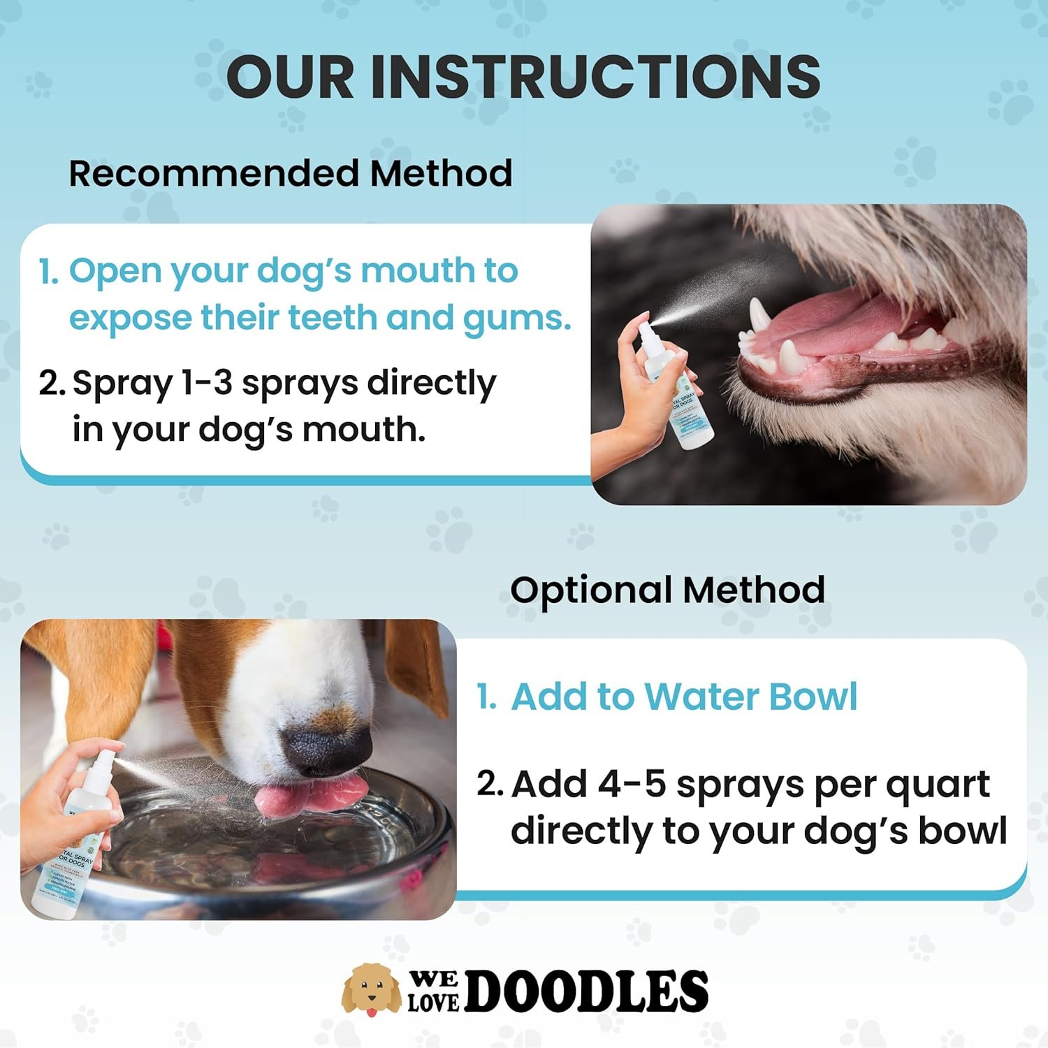 FRESH DOG BREATH SPRAY: Our dog dental spray ensures that your puppy’s breath remains fresh and enjoyable. No more stinky dog breath.