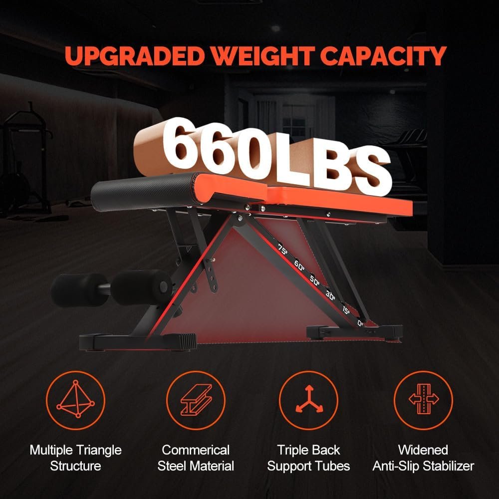Versatile Adjustable Workout Bench: The full body exercise bench could be incline decline from flat to 75°backrest, 6 back position, 4 seat postion, 3 foot postion choice for adjust, to meet different stage exercise need.