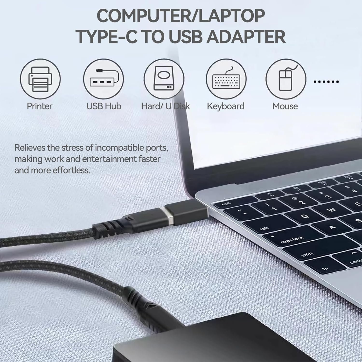 This usb-c to usb adapter converts usb-c port into usb a port.Compatible with USB devices like usb cable,flash drive,external hard disk,card reader,mouse,keyboard,hub,webcam,camera,printer,gaming accessories;type c or thunderbolt 4/3 port of your smartphone,laptop,PC, and tablet,such as iPhone 15/15 Plus/15 Pro/15 Pro Max,Samsung Galaxy,Google,MacBook Pro after 2016,MackBook Air after 2018,iMac,Dell XPS,Surface Pro,iPad Air Pro Mini.