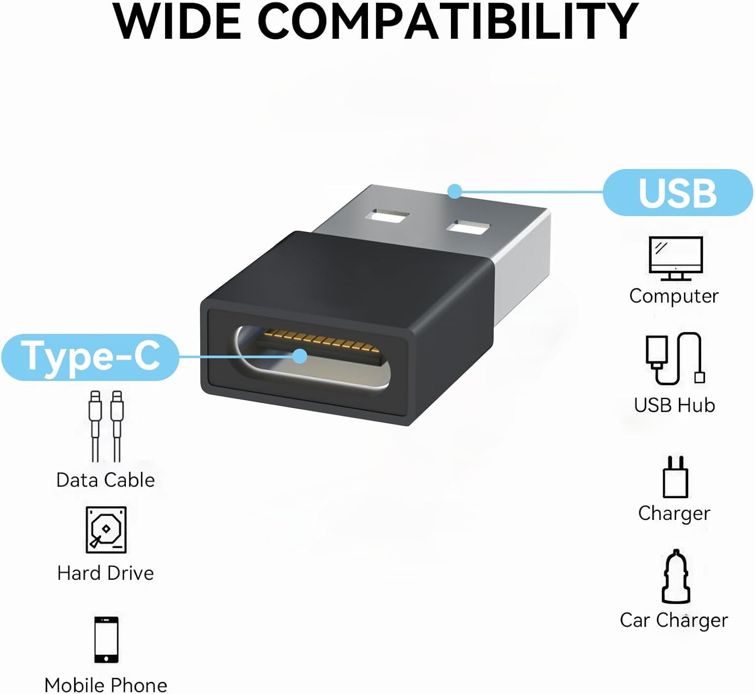 The adapter converts any device’s USB port to Type C port, providing stable, reliable data transfer without any unnecessary operation.
