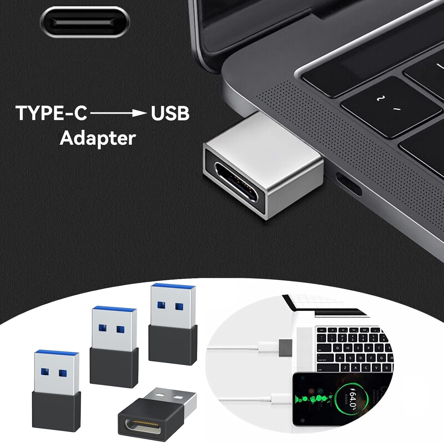 This is a USB-C female to USB-A Male adapter. By inserting the adapter into an available standard USB port, it can become a USB-C port.(Only for charging or data transfer)