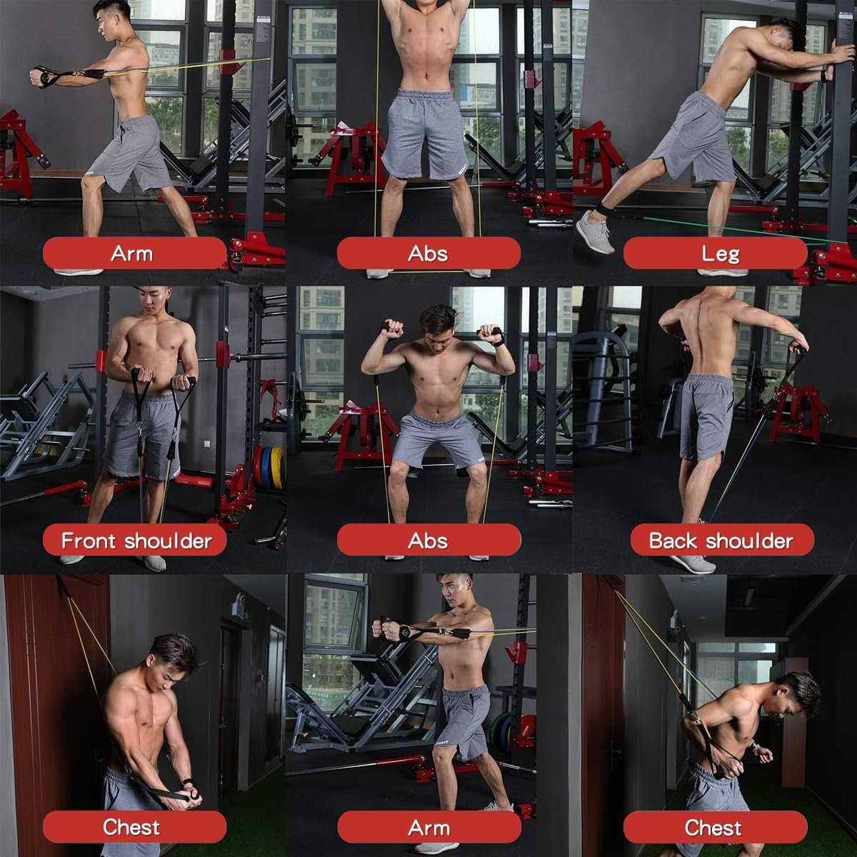Personal home gym: Our resistance band set includes 5 exercise bands, 1 door anchor, 2 cushioned handles, carrying case and user manual to allow you to perform the widest variety of resistance training exercises possible at home.