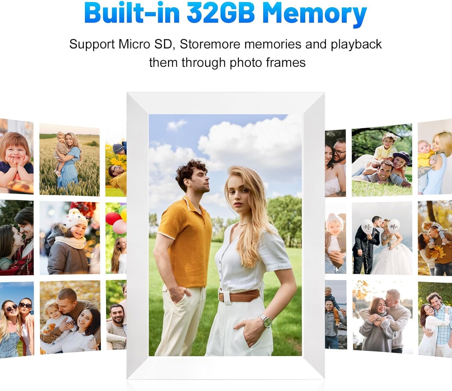 WIRELESS SHARING VIA APP – App “AiMOR” can work on both Android & iOS phones. You can download it from Google play or App store and connect it with your Anna Bella WiFi digital picture frame. Once done, you are allowed to share photos or short videos (Up to 15sec.) with your loved ones via App for lifetime with zero subscription fee. Built-in 32GB memory, Support Mirco SD Card extend storage, also can Import and Export pictures or videos.