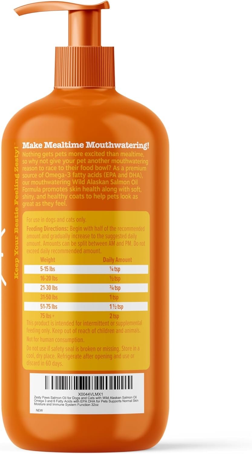 Wild Alaskan Salmon Oil Formula for Dogs & Cats – Omega 3 Skin & Coat Support – Liquid Food Supplement for Pets – Natural EPA + DHA Fatty Acids for Joint Function, Immune & Heart Health 32oz