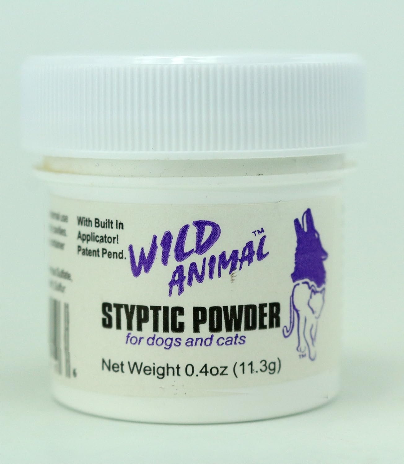 Styptic Powder helps stop the bleeding. Great dispensing jar, no spill inner lid for easy access when you need it fast. To control nail bleeding Wild Animal Styptic powder is what you’re looking for.  It comes with a new dispenser jar, easy to use and reduces waste. Highest concentration of blood stop ingredient on the market. For dogs and cats.