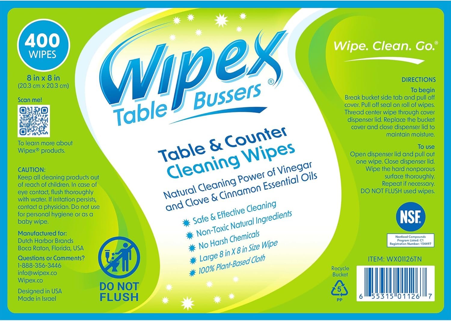 Wipex Table Bussers – Natural Cleaning Wipes | Table Cleaning Quick Cleaner & Counter Wipes | Made with Vinegar, Propolis, Clove and Cinnamon Oil, 400 Natural Surface Wipes