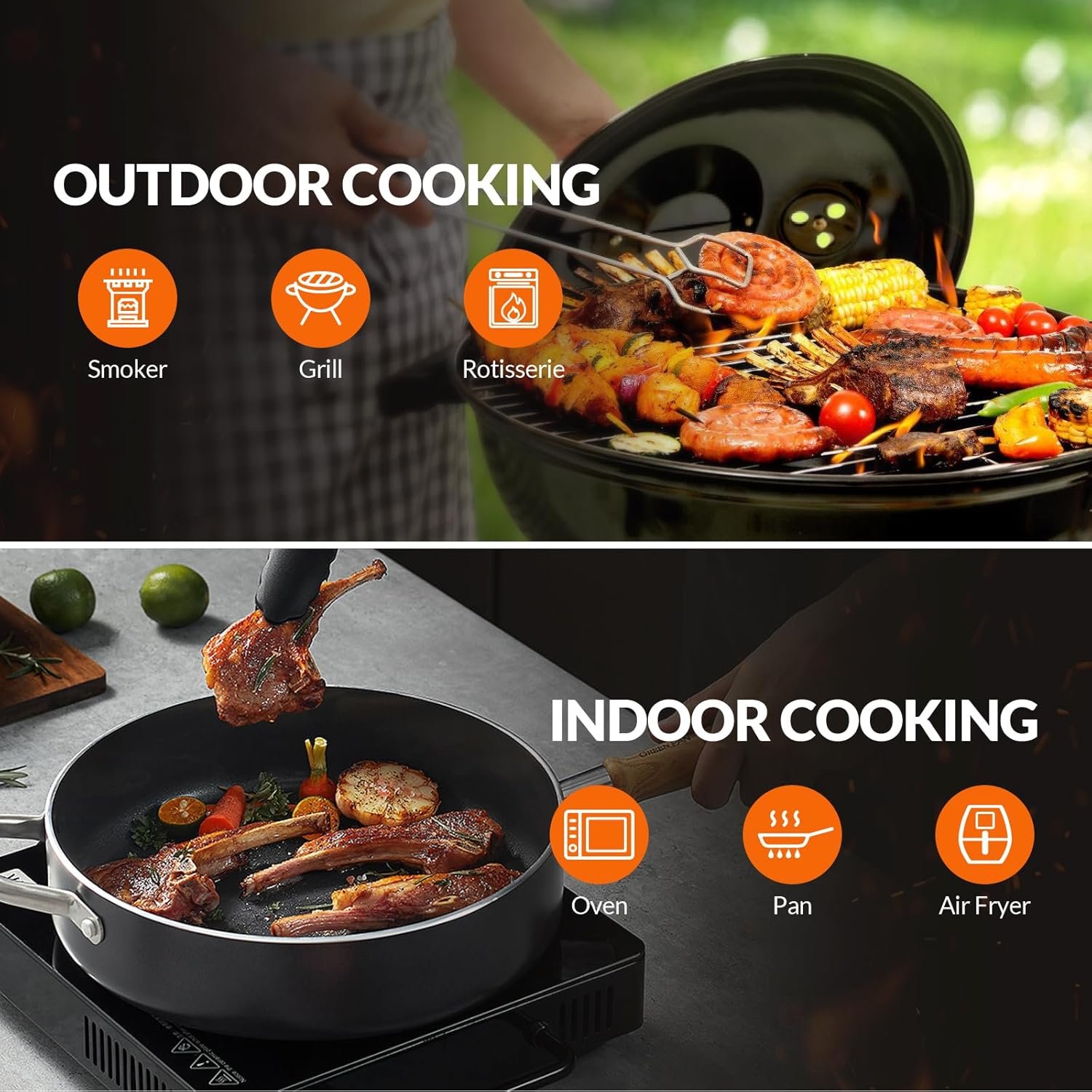 【Versatile Usage】Built-in presets for various meats and doneness levels streamline the cooking process for beginners and pros alike. Perfect for all types of meat, poultry, and fish, whether you’re grilling, roasting, smoking, or baking.