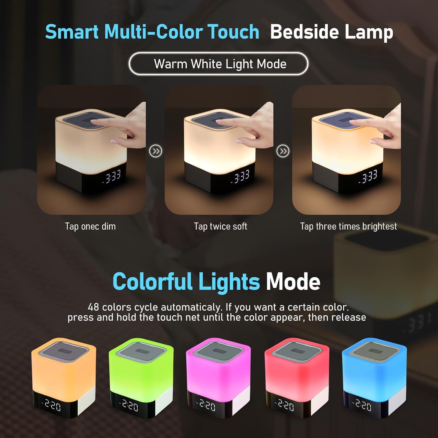 SOFT LAMP LIGHT / 48 LED LIGHT – 3 Level brightness adjustable warm light with cool touch sensor design on top.The warm light can be used for relaxing, living room, bedroom reading and kids night light.Light can also change to music light mode which multi light colors change with the rhythm of music automatically.Also, you can choose only 1 color for lighting in lighting mode(total 48 lighting mode colors).