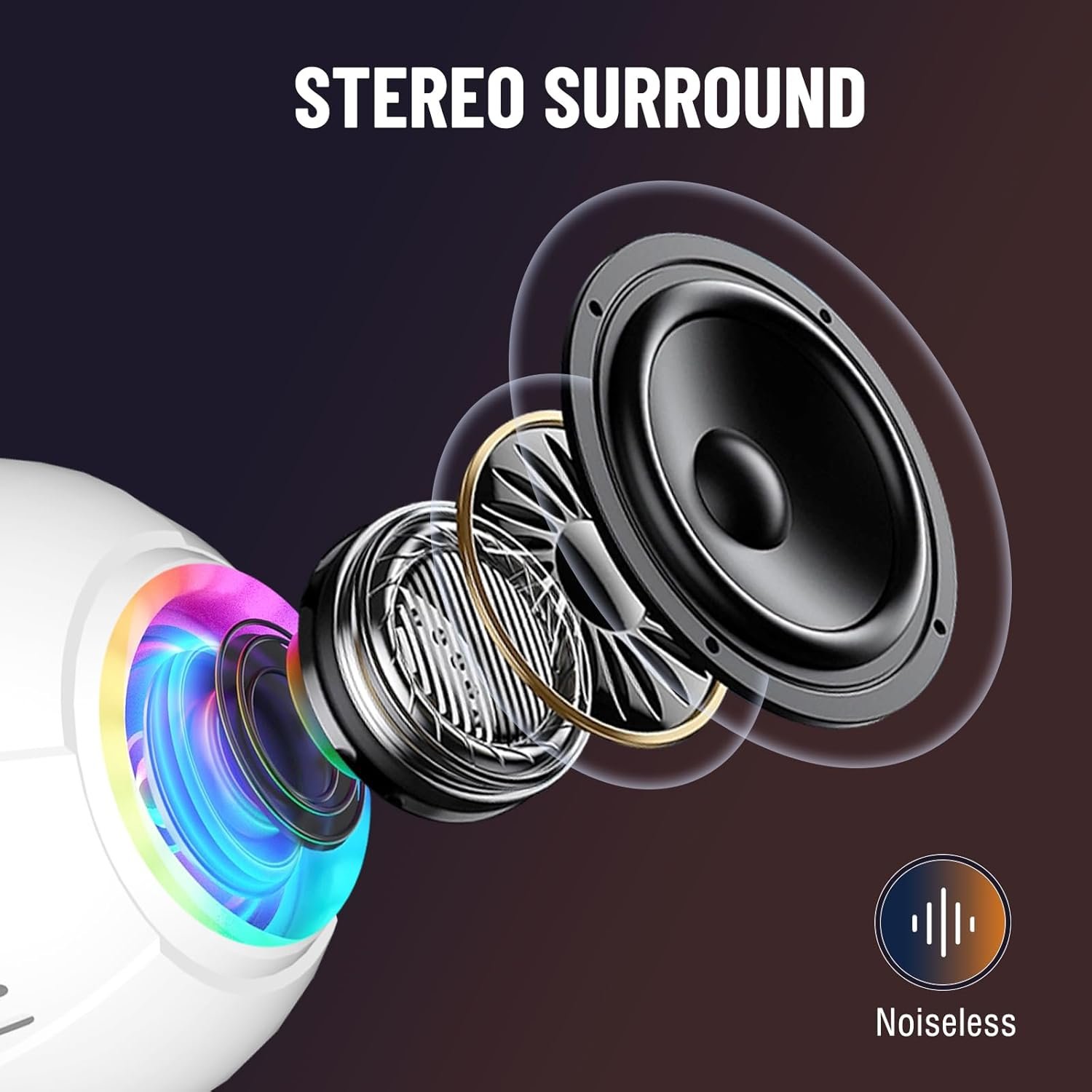 Wireless Bluetooth Speaker, Portable Speaker with 360° Surround Sound and LED Light Mode for Home, Outdoor, Festivals and Parties