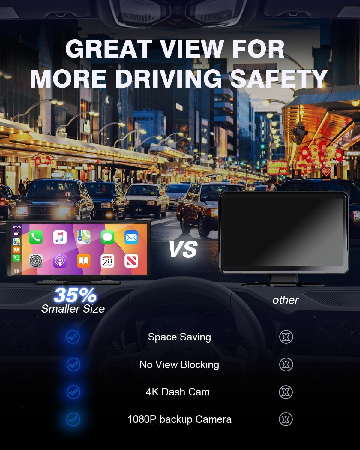 Compatible with a variety of vehicles, including cars, trucks, vans, buses, and pickups, ensuring versatile and user-friendly installation. Great Carplay screen for upgrade older cars without it built-in