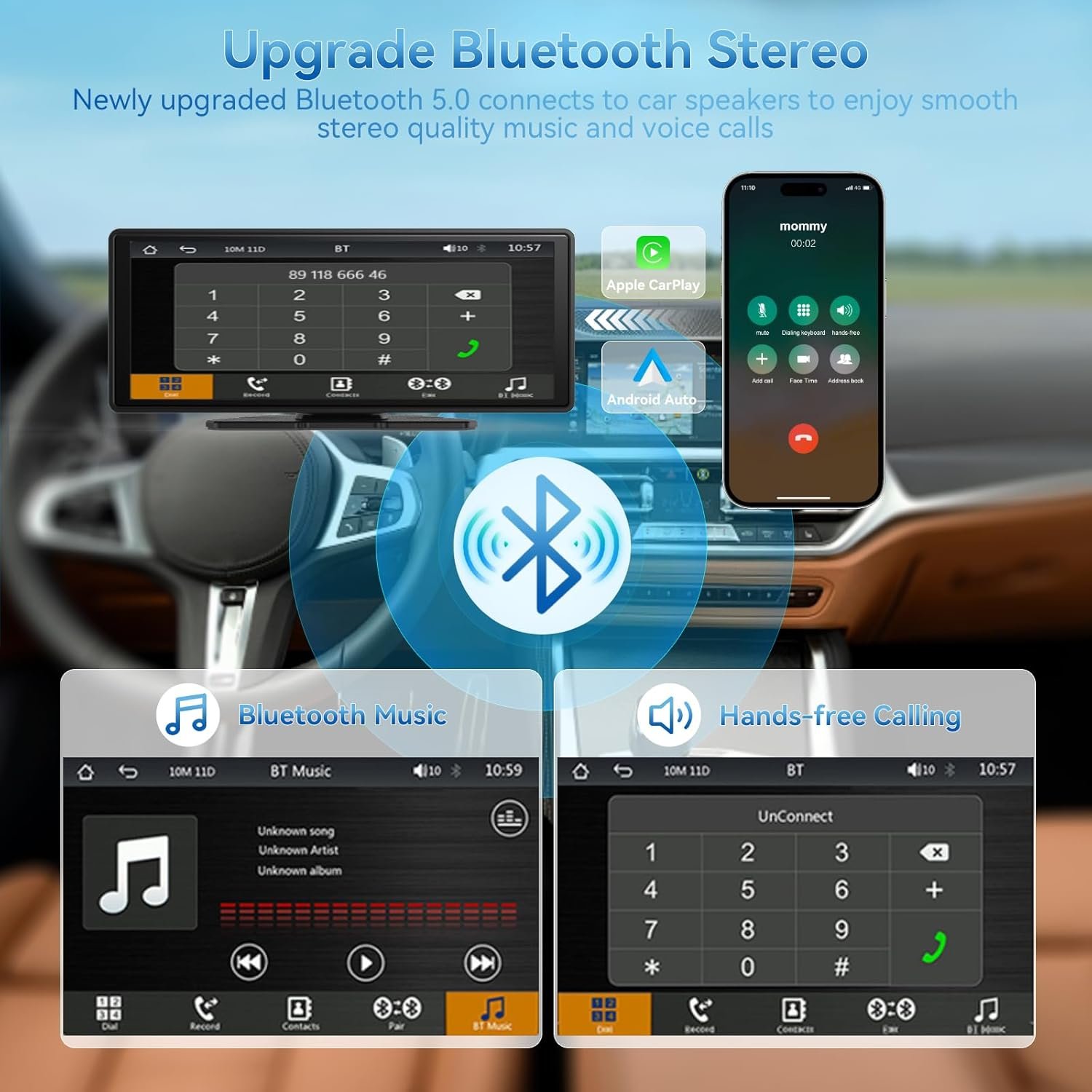 Upgraded Bluetooth Stereo and Voice Control: Experience a hands-free journey, with Siri or Google Assistant integration, you can easily perform tasks without touching the screen. Make calls, navigate, and manage apps while enhancing safety and eliminating distractions. Just speak the command, giving you a safer and more comfortable driving experience.