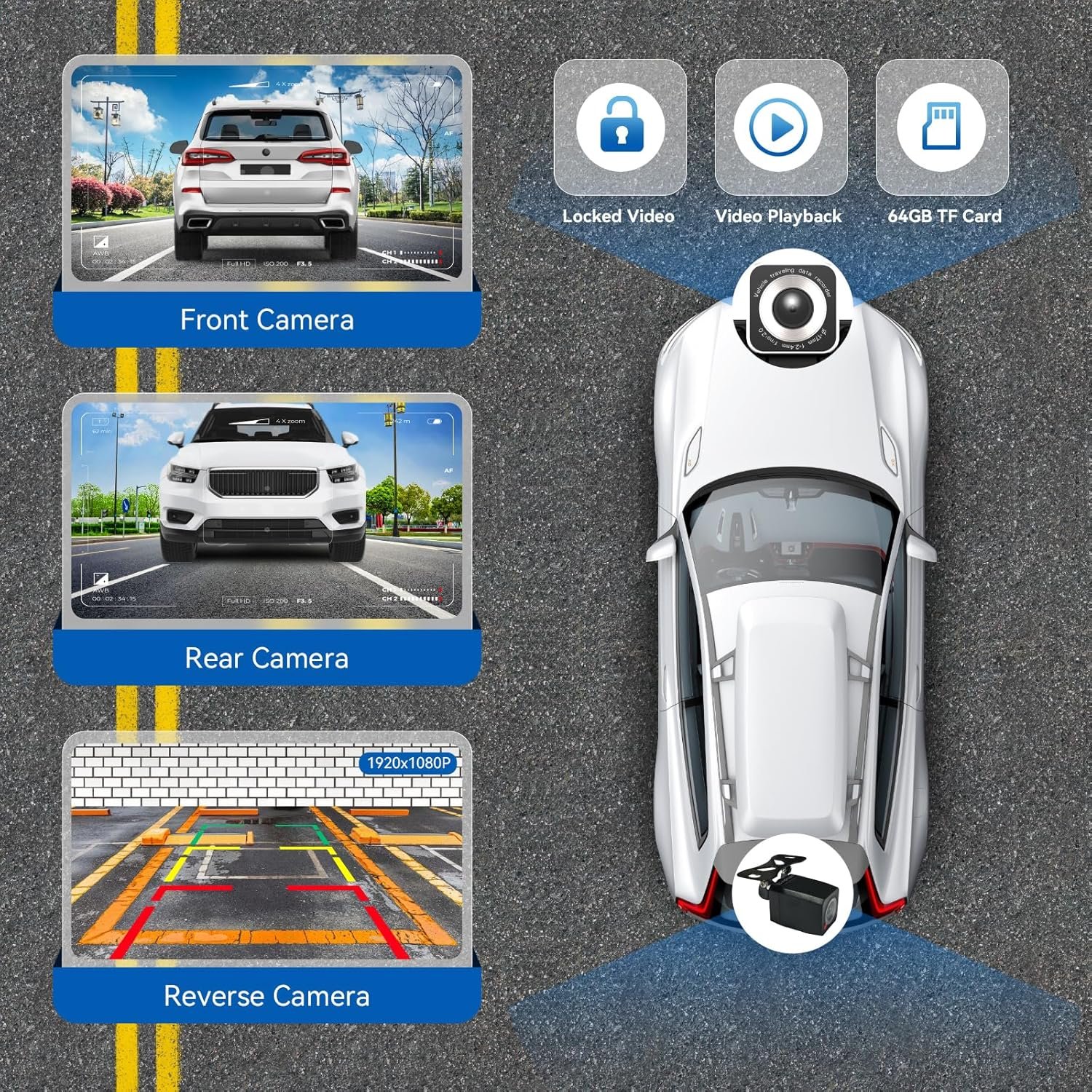 Front 4K+Rear 1080P Camera: This portable Carplay screen is equipped with a front 4K and rear 1080P camera, which uses the camera to capture images of the surrounding area and transmits them to the integrated device in real time. With this car screen Carplay, the driver can intuitively see obstacles and pedestrians around the vehicle, effectively reducing the occurrence of accidents such as scratches and collisions.
