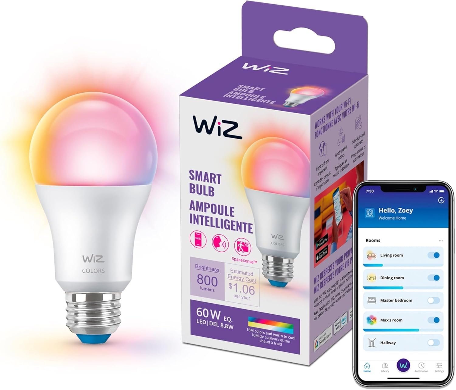 The WiZ LED A19 full color bulb brings smart lighting for your daily living. Retrofit into any lamp shade to create the ambience of your choice with 16 million colors as well as warm to cool white light