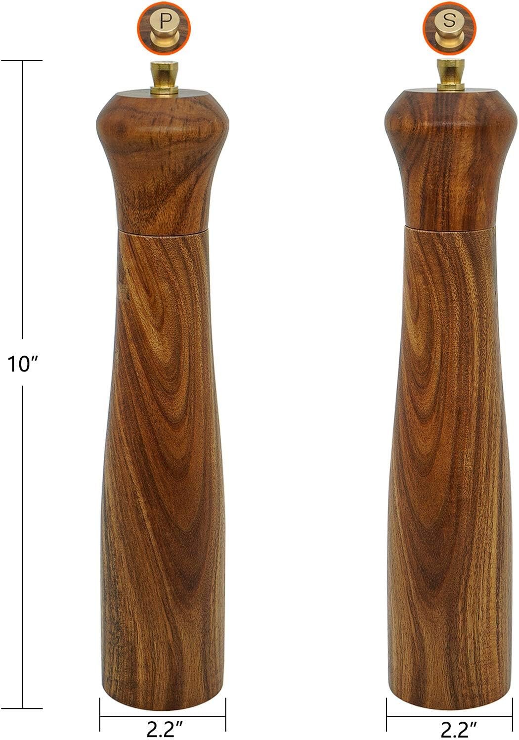 Natural Wood material: This salt peppper grinder set is made of Solid Natural Acacia wood .spicy grinder, ceramic rotor. Elegant and fancy pepper mill grinders is great gift for neighbour or Friends,Father’s day gift