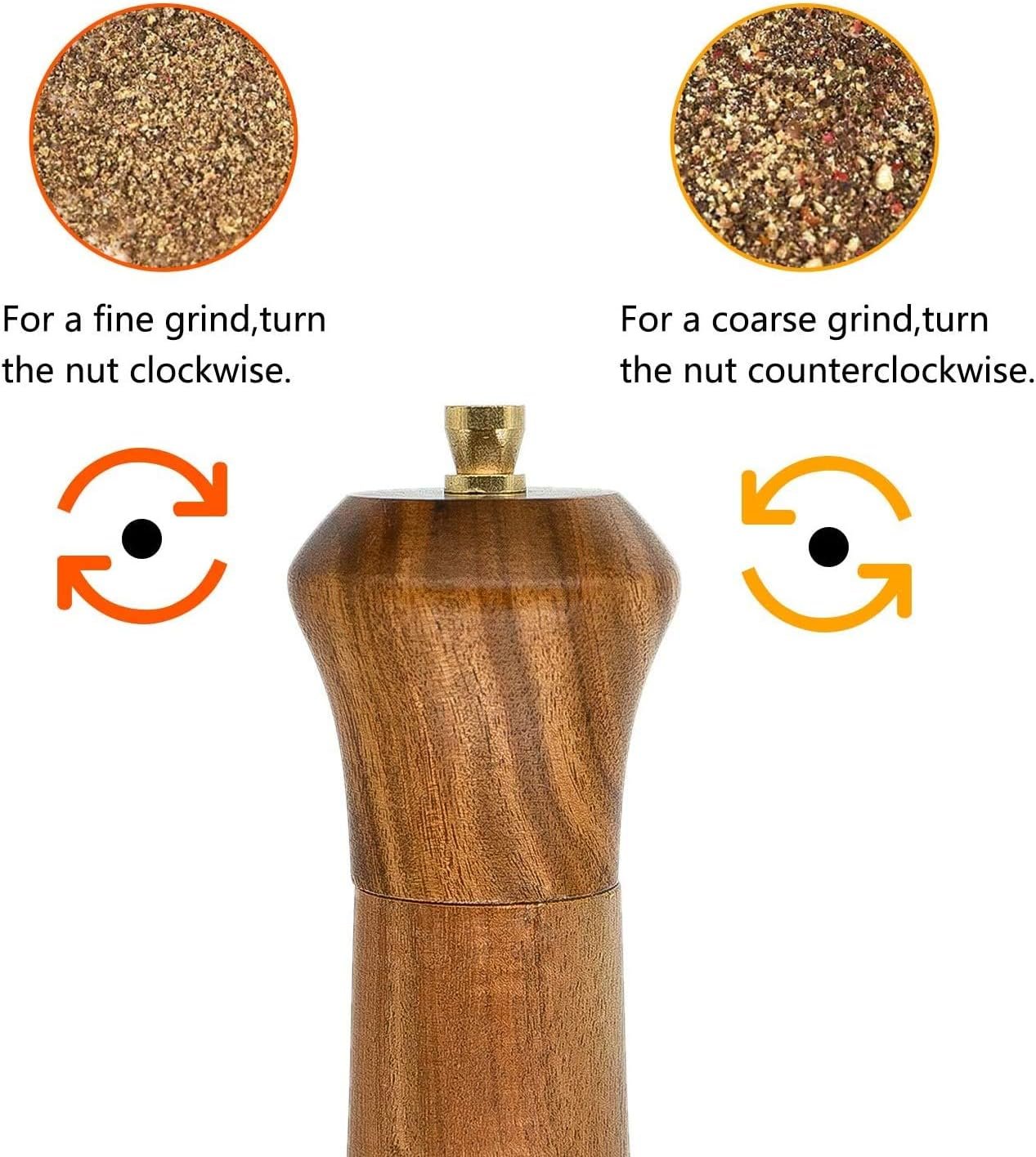 Adjustable& Easy To Use: Each of our professional Pepper grinder, contains an efficient adjustable,It is easy to adjust by twisting the nut at the top of the grinder from loose to tight to get the desired spice fineness according to your needs, counter-clockwise for more coarse, clockwise for fine