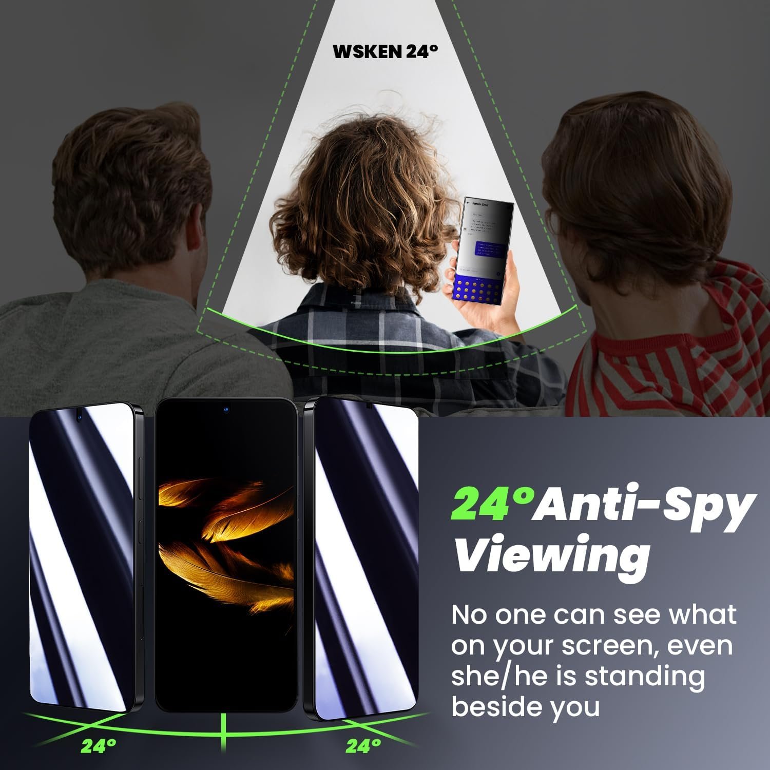 [Upgraded 24° Anti-Spying] WSKEN for Samsung Galaxy S24 Plus / S24+ (6.7 inch) privacy screen protector tempered glass adopts the latest 24° Anti-Peeping technology (ordinary glass is only 28 °or 30 ° privacy protection) to ensure that only the person in front of the screen can see, for your privacy and sensitive information to build a strong wall of protection!!!
