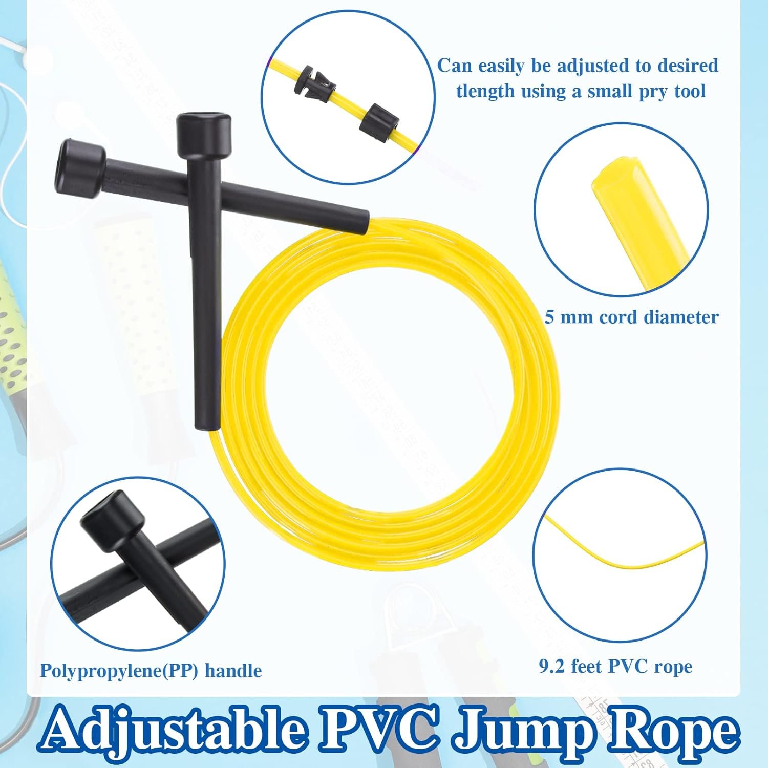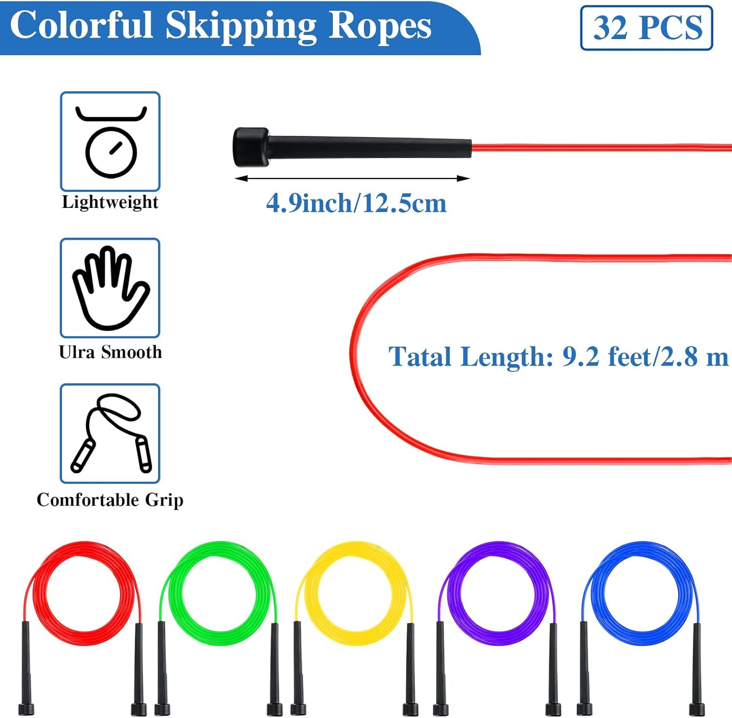 Items Sent to You: there are a total of 32 pieces of PVC jump ropes in the package for you, available in 8 different colors, 4 pieces for each color; Adequate quantity and assorted colors can meet your daily use and share demands