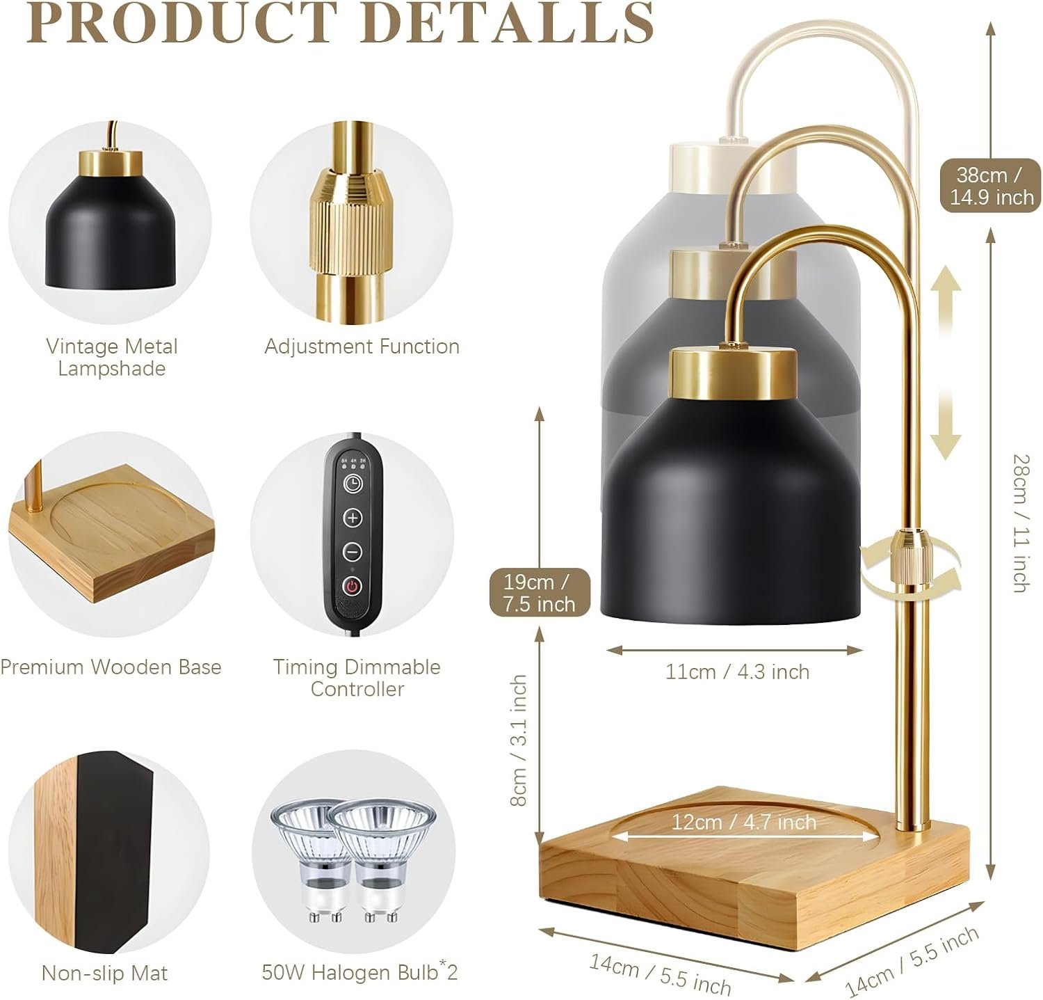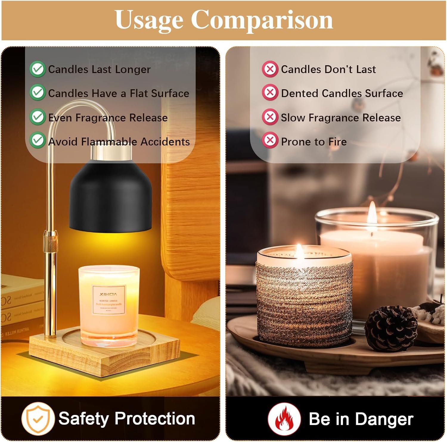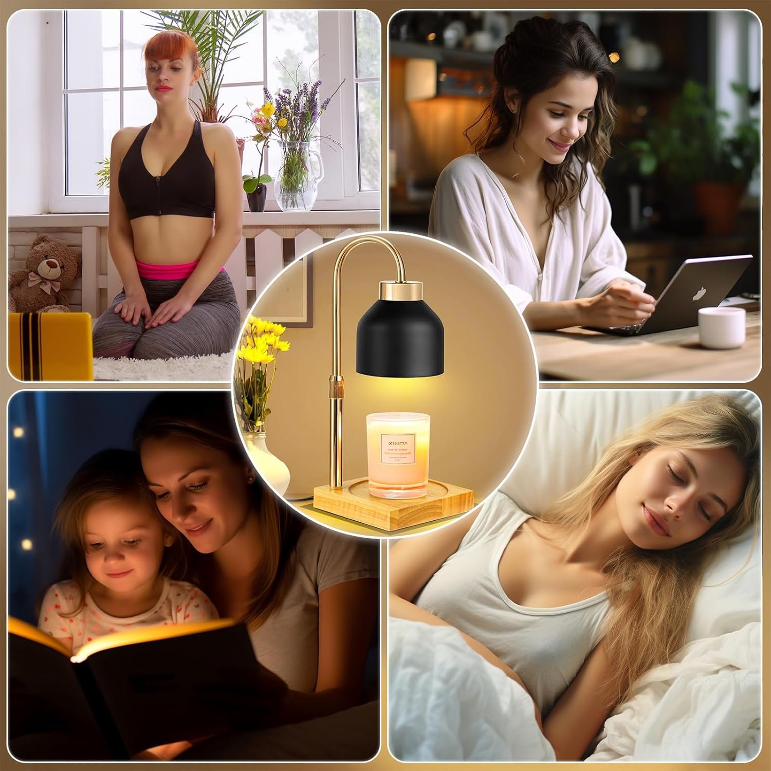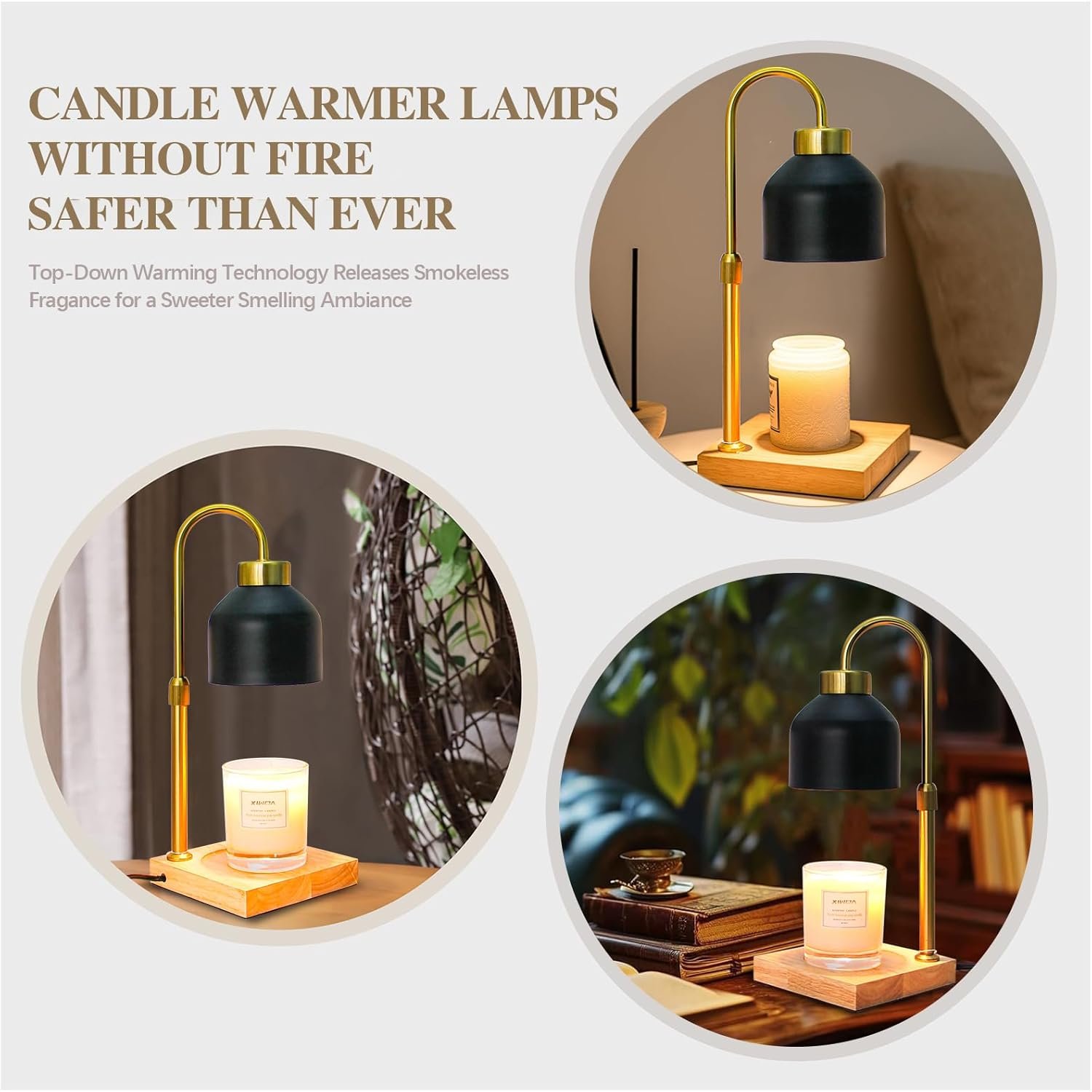 【Suitable for all sizes of candles】Candle lamp warmer is designed with grooves on the base for storing candles of all sizes, and the height-adjustable lamp pole design allows you to adjust the distance of the lamp head to fit your candles.