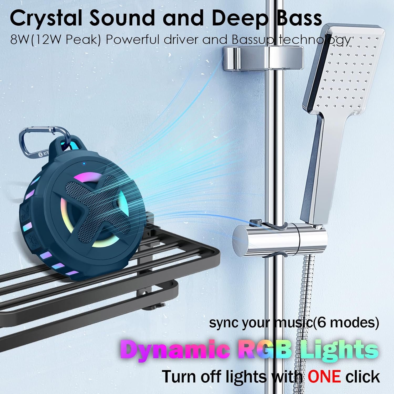 ♬【6 Modes RGB Light Show】Waterproof shower Bluetooth speaker X8 can light up your life. You can enjoy the RGB light show when you using the shower speaker listen music. 6 modes RGB light let your life become more interesting at night. Our Cool RGB Bluetooth Speaker can be as a gifts for Kids,teens,boys,girls,men, women, your friends or family!