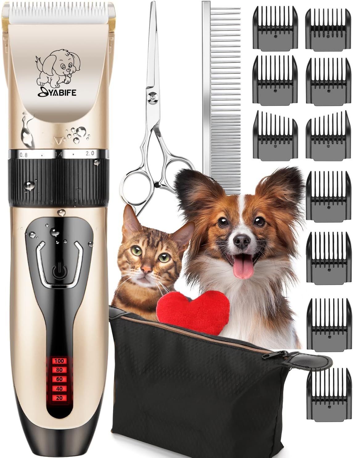 YABIFE Dog Clippers, Cordless Dog Grooming Kit, USB Rechargeable Electric Pets Hair Trimmers Shaver for Dogs, Cats and Small Animals, Whisper Quiet, Wet and Dry Use