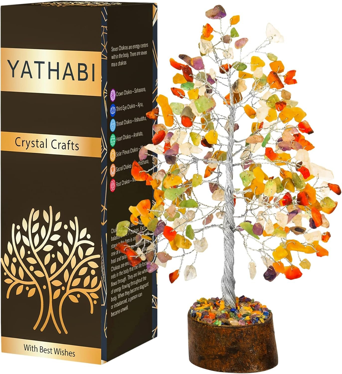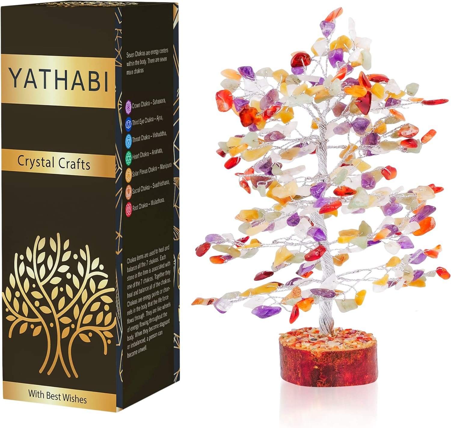 YATHABI Chakra Tree – Crystal Tree of Life Decor – Feng Shui Money Tree – Crystal Bonsai Tree – Chakra Stones – Good Luck Gifts for Women – Spiritual Trees – Crystal Decor – Luck Stones – Home Decor