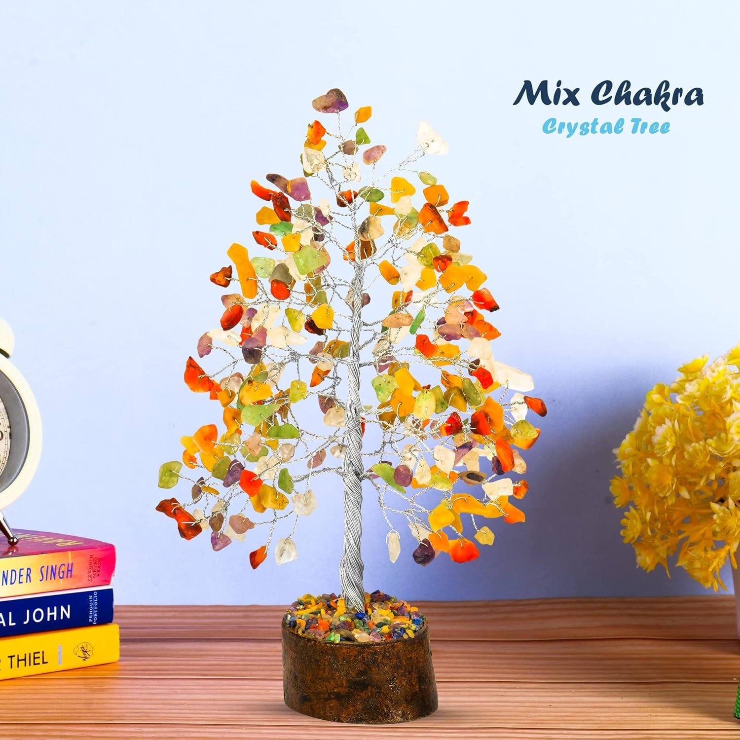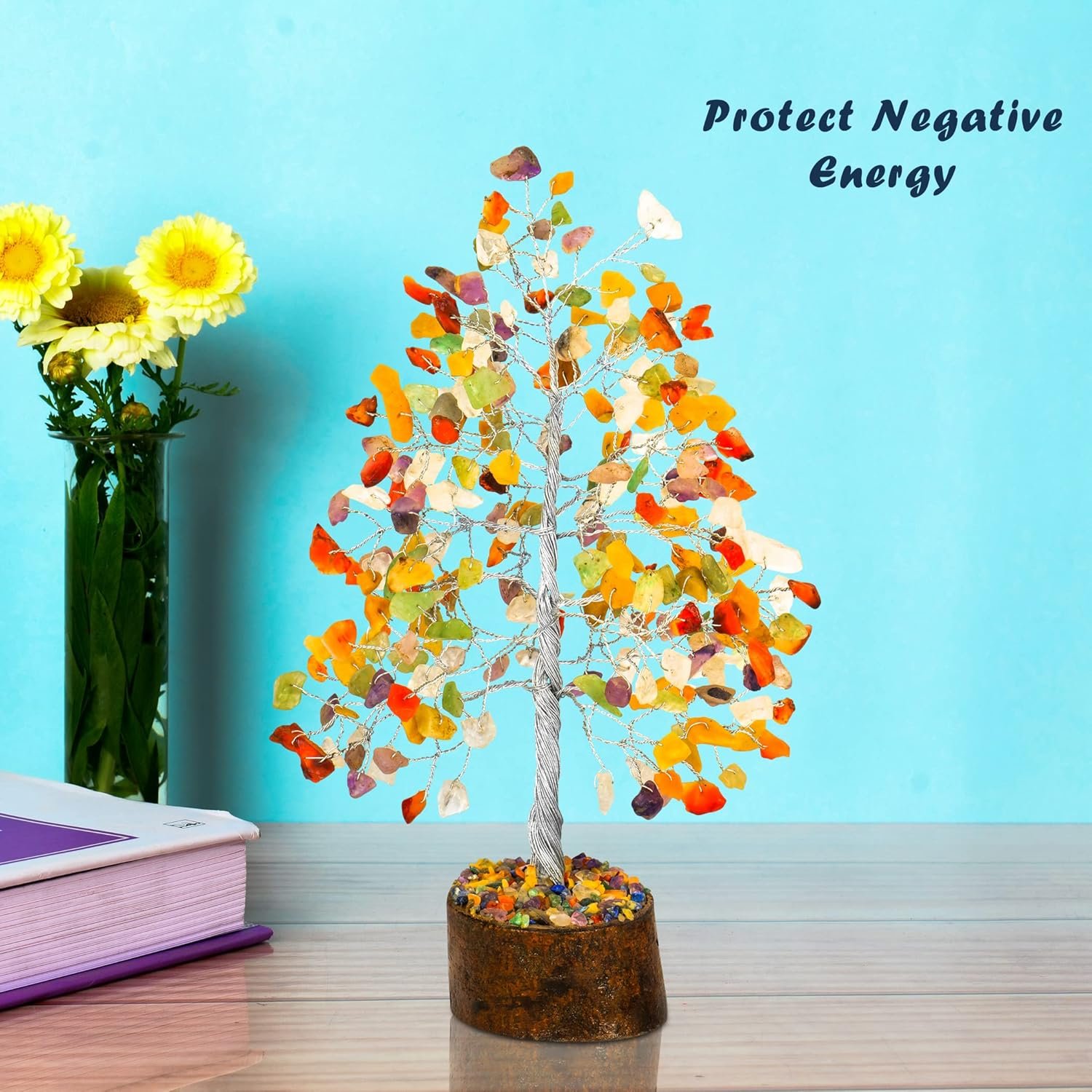 Artificial bonsai tree with stone. You can use this seven chakra tree as a decorating item like feng shui décor tree, office décor, home décor, room décor, and table décor. This chakra tree is decorated your all places and saves you. This crystal tree is a handmade tree and seven chakra stone trees. It is a bonsai tree living decorating item for your best places.