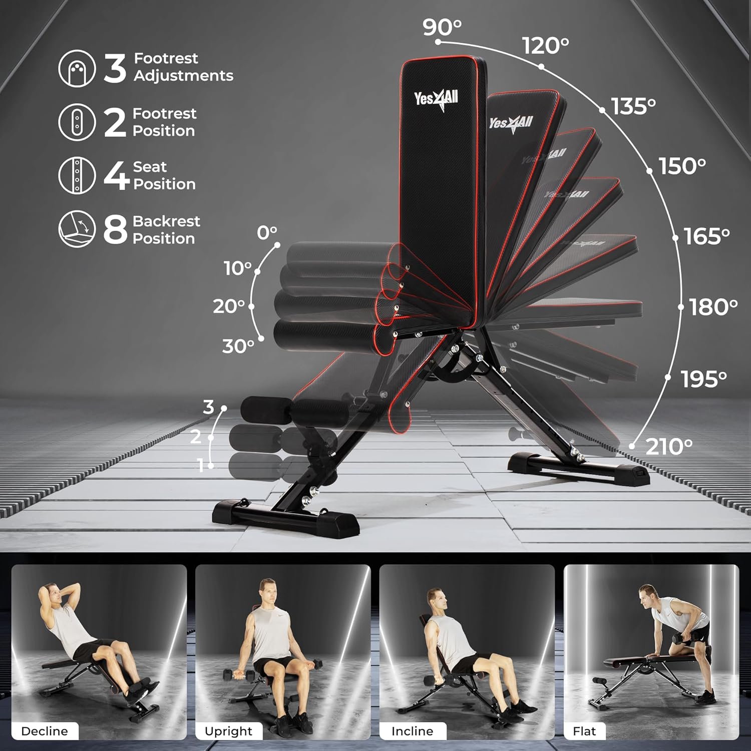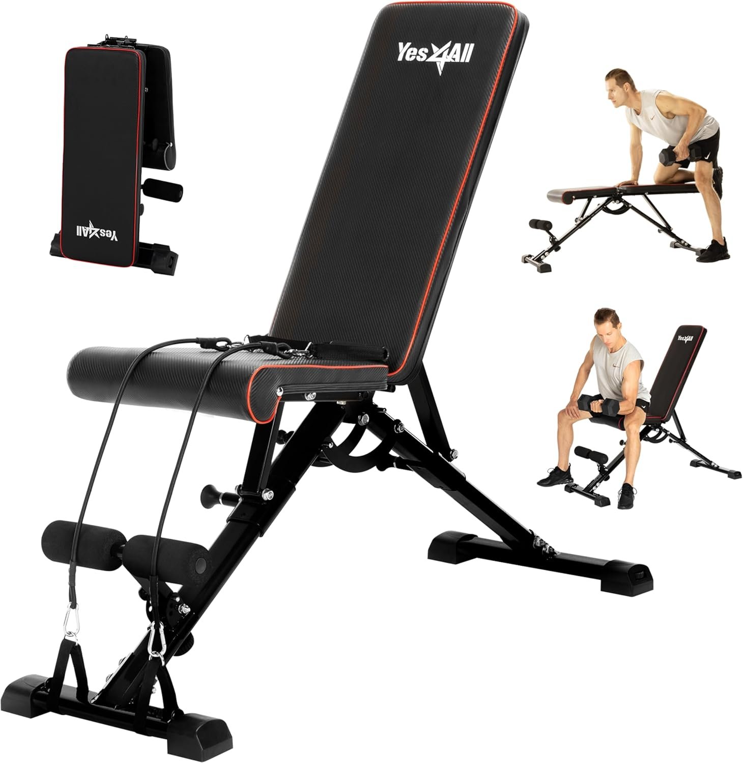 EASY ASSEMBLY FOLDABLE WEIGHT BENCH: With only 3 simple steps required, allows users to set up the workout bench foldable quickly; Space-saving folding weight bench is convenient for storage; Workout anywhere with portable