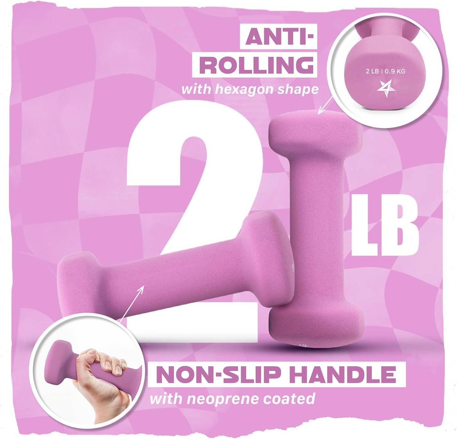 COLOR CODED NEOPRENE DUMBBELL WITH ANTI ROLLING HEAD: Color coded free weights neoprene dumbbell with printed weight number on the end caps for easy identification. Hexagonal head prevents rolling away from the storage place or during your exercise