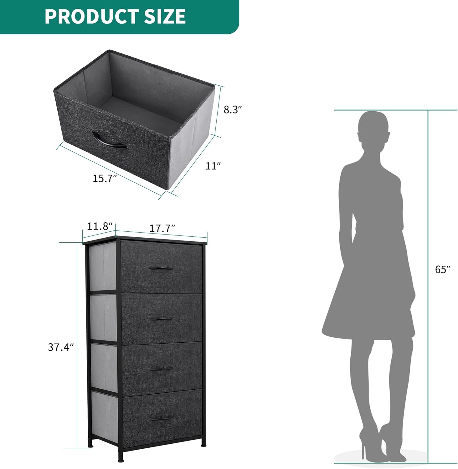 LARGE CAPACITY- 4 deep drawers provide multiple storage options and ample room to make your living space neat and tidy; Overall dimensions: 17.7″ L x 11.8″ W x 37.4″ H, drawer dimension: 15.7″ L x 11.2″ W x 8.3″ H