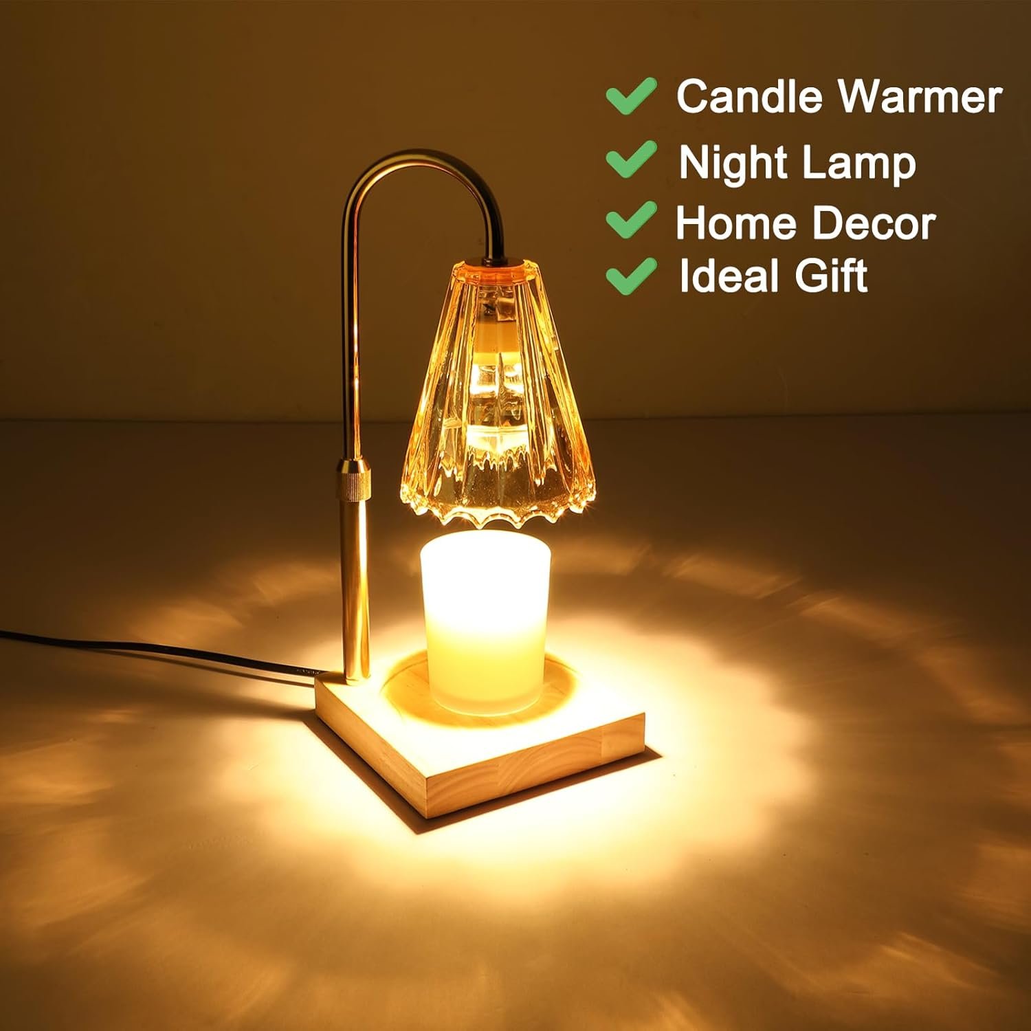The crown has a glass lampshade, which is very beautiful when the light is turned on Candle Warmer Lamp Adjustable HeightCandle Warmer Lamp Adjustable Height Adjustable Height Support Rod