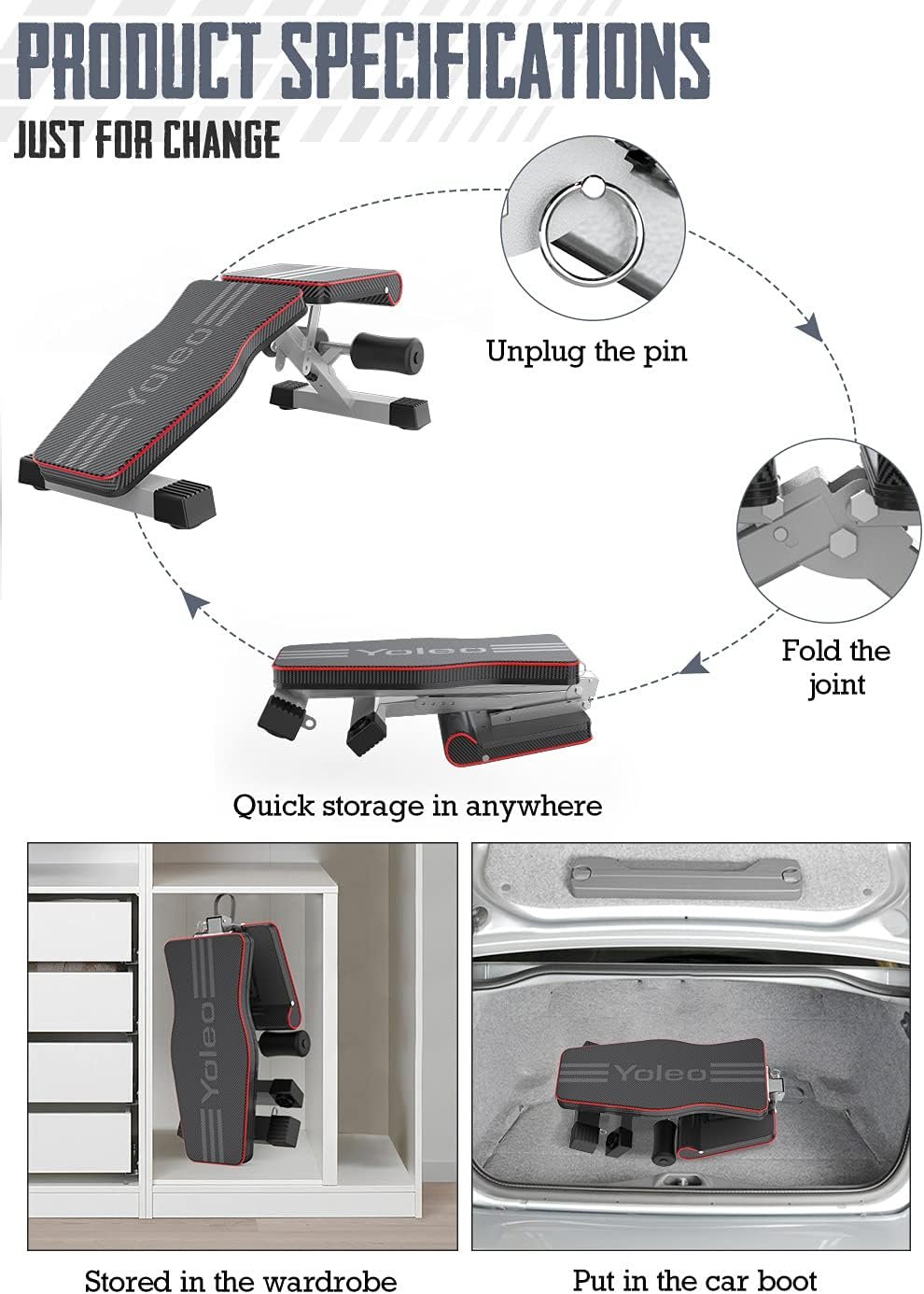 YOLEO Folding Gym Bench for Full Body Training, 300kg/660LB Abdominal Bench for Strength Training in Gym Home, with Quick Folding and Fast Adjustment