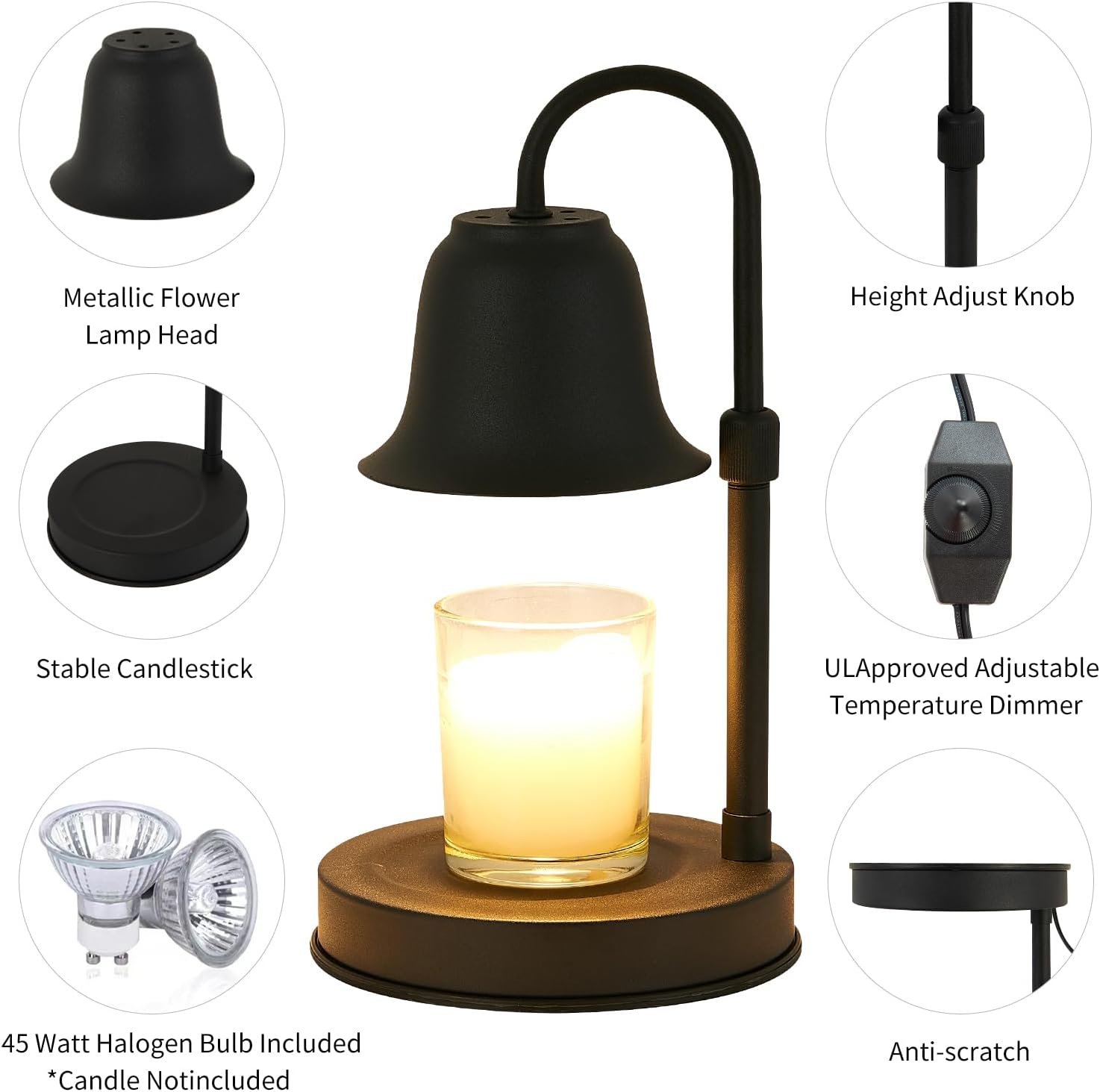 ✅【Easy to Use】:The candle warmer is equipped with 2 Bulbs. The electric candle warmer melts candle and wax from the top down using a 50W GU10 halogen bulb for fast and efficient fragrance distribution. With dimmer control of the aesthetic home decor lamp candle warmer, you can adjust the melting speed. The brighter the setting, the faster it melts