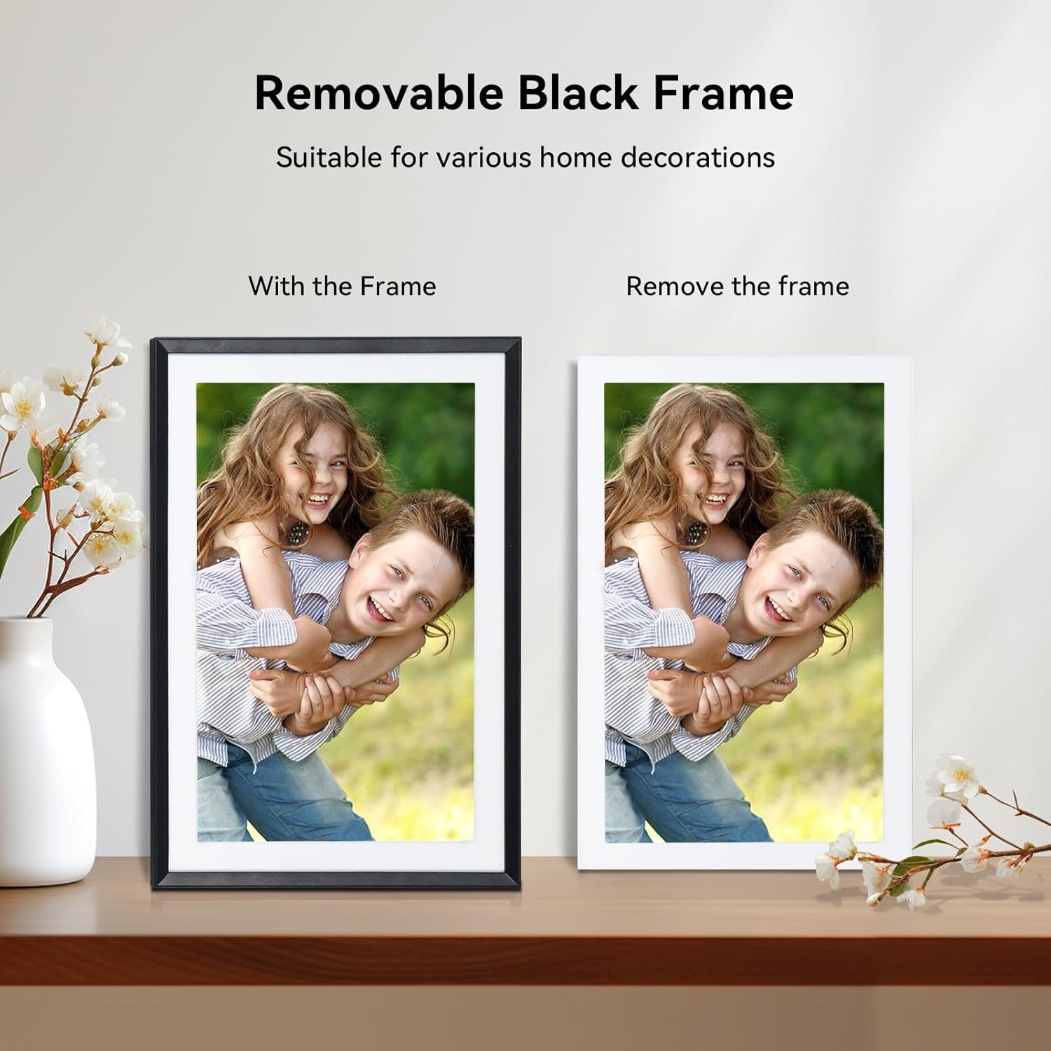 【ALL-In-One Digital Picture Frame】The WiFi video picture frame has the function of automatically rotating the photos and can adjust the orientation according to the photos. It also displays calendar, weather and clock, and can be used as an alarm clock with external volume. The black picture frame is removable and matches a variety of décor styles.