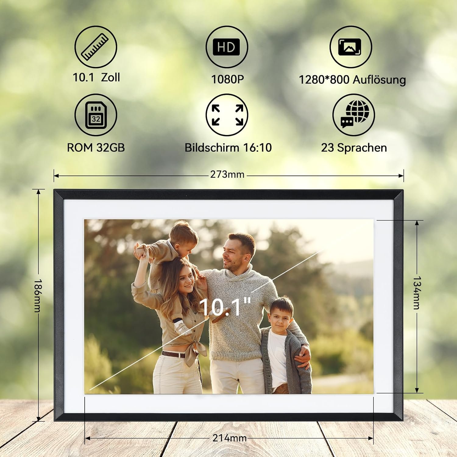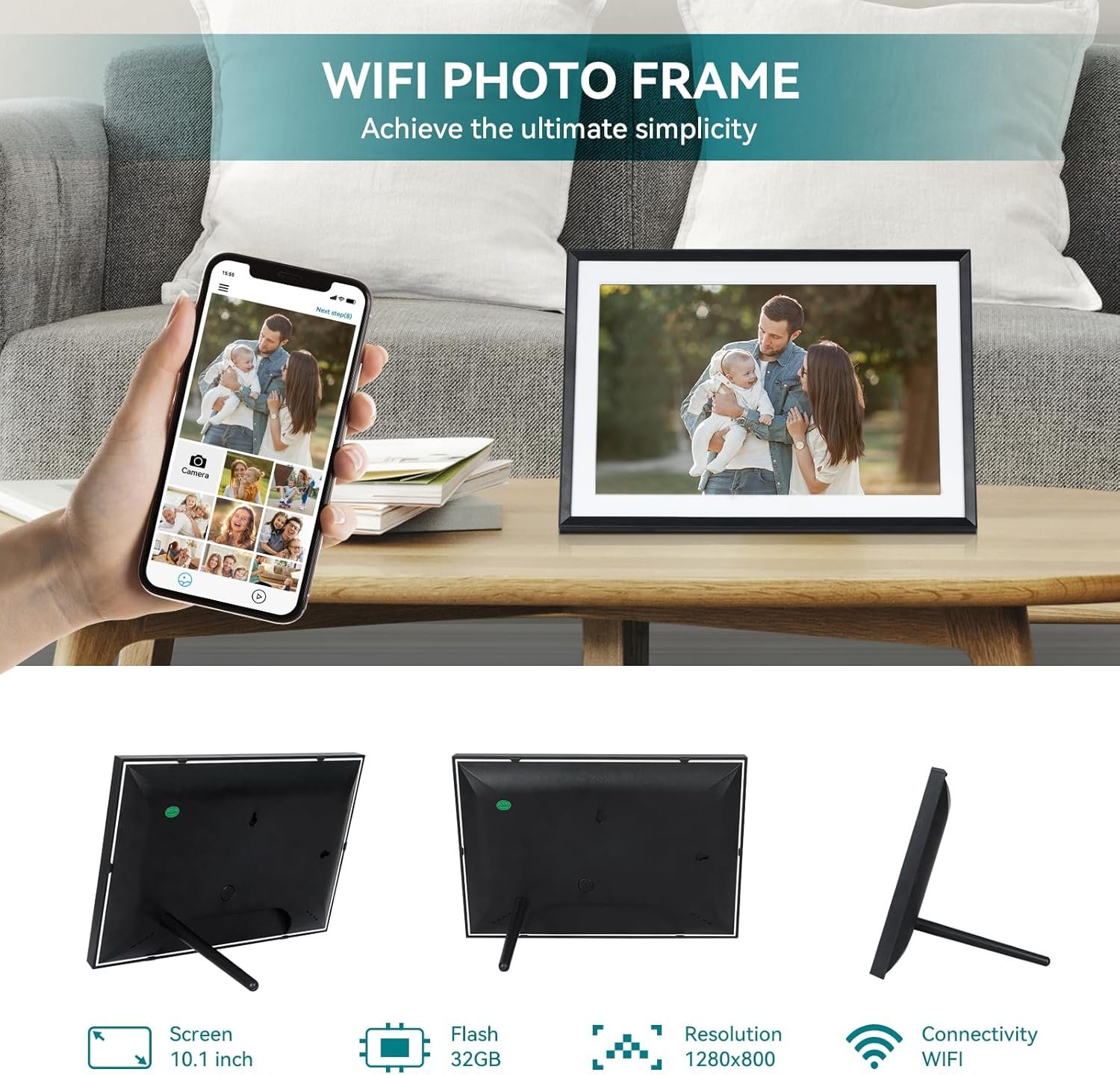 【10.1-inch IPS HD Touchscreen】 YOURLITE digital picture frame wifi comes with a 10.1-inch IPS HD screen 1280*800, which is capable of presenting clear images and true-to-life colours to bring your memories to life. The touchscreen makes it easy to use, you can easily adjust the brightness by sliding your finger on the touchscreen, and you can easily browse and manage your photos by touching the screen.