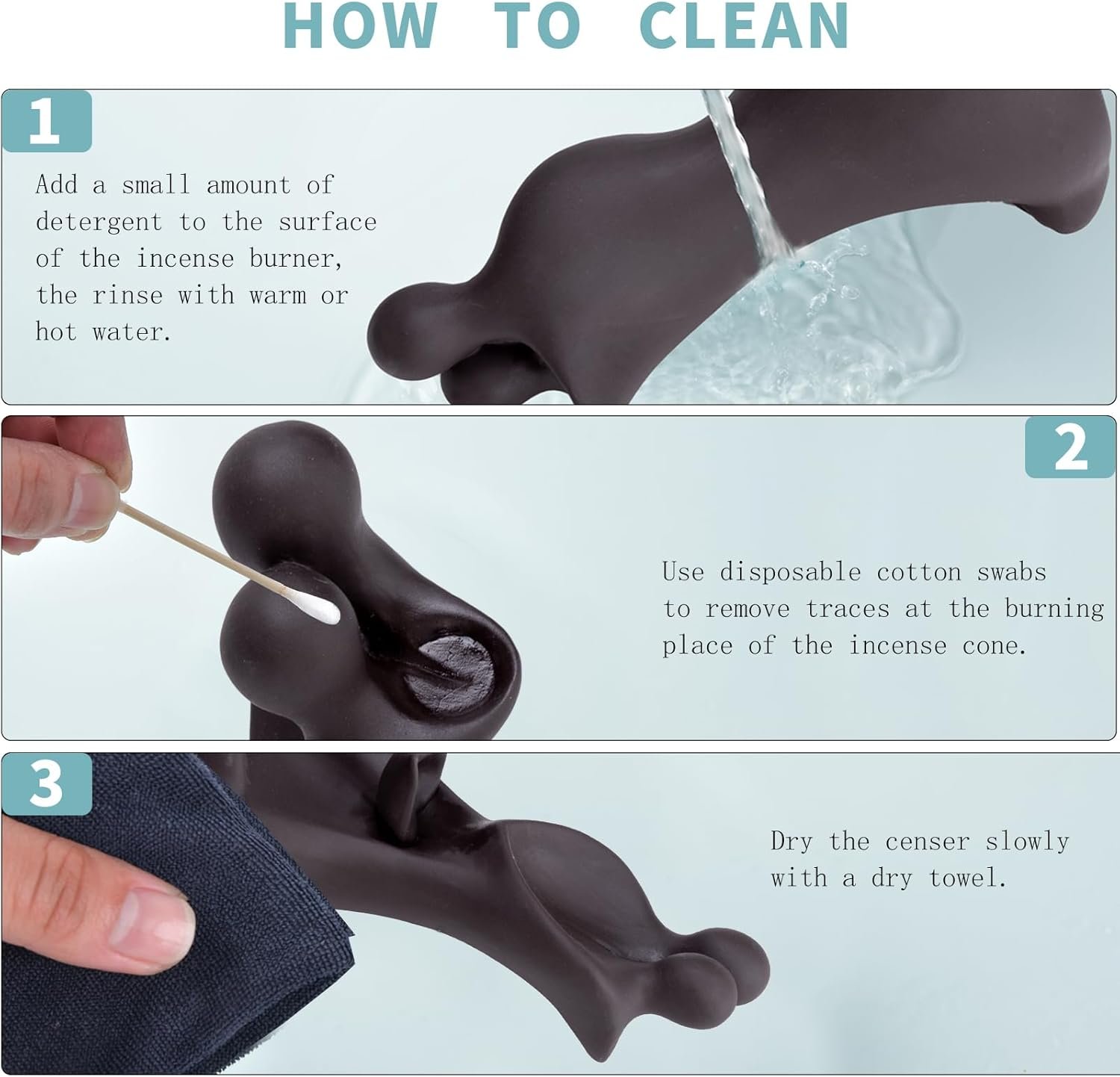 Backflow Insence Burner: Need to use backflow incense cone, burning incense cone placed in the incense holders hole, there will be beautiful results.