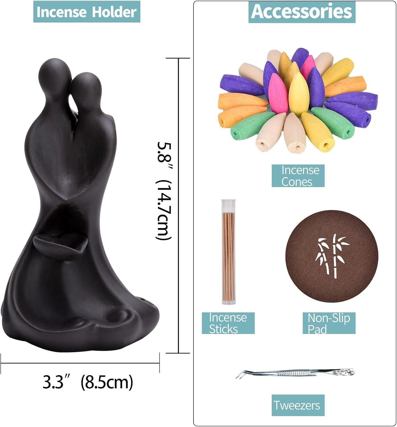 【Packaging Includes】YYW Incense burner set includes 1 incense burner,20 incense cones,30 incense sticks,1 mat + 1 tweezers. You can use it directly without buying additional accessories, which will be a very convenient decoration in your home or office.