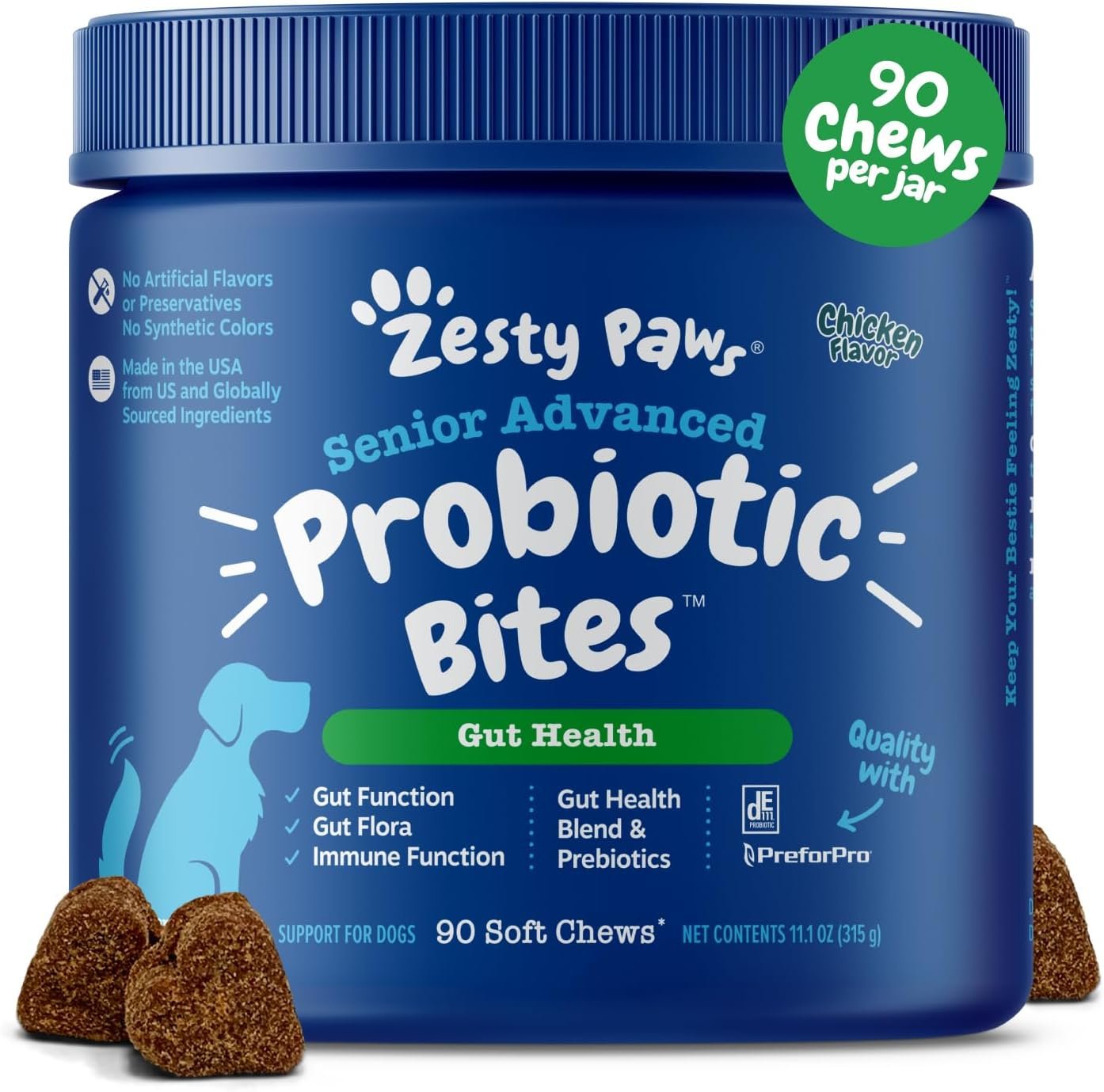 Zesty Paws Probiotics for Dogs – Digestive Enzymes for Gut Flora, Digestive Health, Diarrhea & Bowel Support – Clinically Studied DE111 – Dog Supplement Soft Chew for Pet Immune System – Adv, 90ct