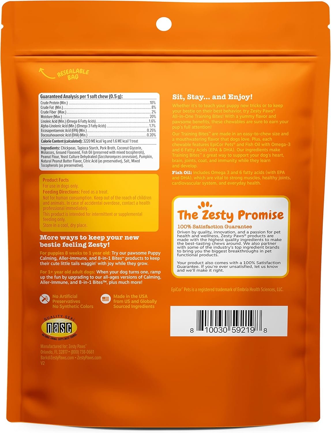 Sit, Stay… and Enjoy! –Zesty Paws Soft & Chewy Dog Training treats are delicious training chews that provide heart, brain, joint, immune, skin, and coat support for your bestie!