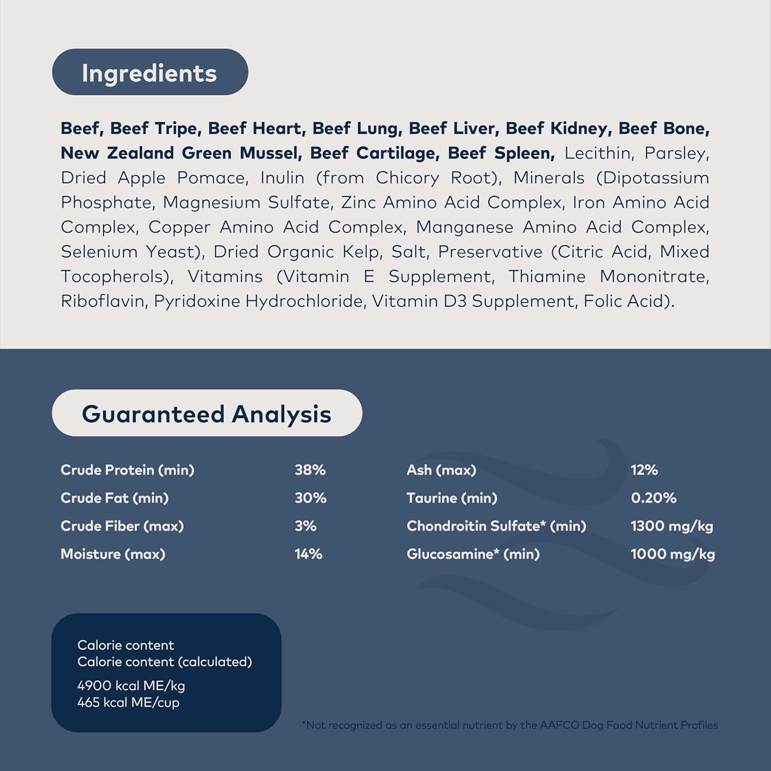 HIGH PROTEIN, NUTRIENT DENSE: Authentic whole-prey ratios, featuring 96% free-range Beef, Organs, Bone, and New Zealand Green Mussels Safely air-dried ingredients deliver peak nutrition and mouth-watering taste for the pickiest dogs