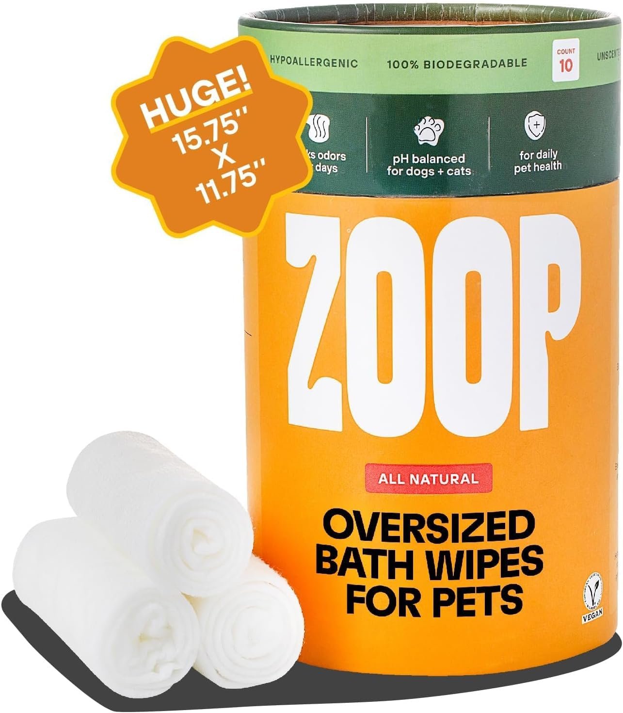 ZOOP XL Pet Wipes for Dogs & Cats – Thick, Huge Bath Wipes for Cleaning, Deodorizing, Conditioning, Wet Dog Wipes for Paws, Butt, Ear, Eye, Face, Whole Body, with Nanosilver-10 Count