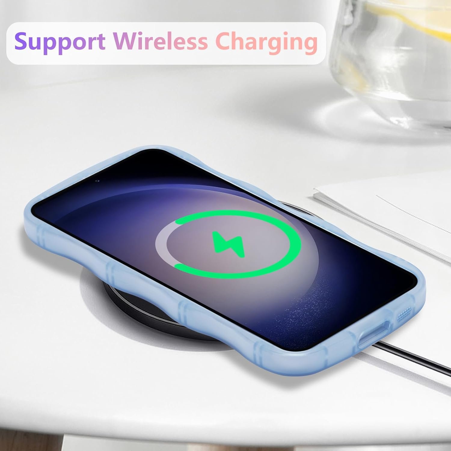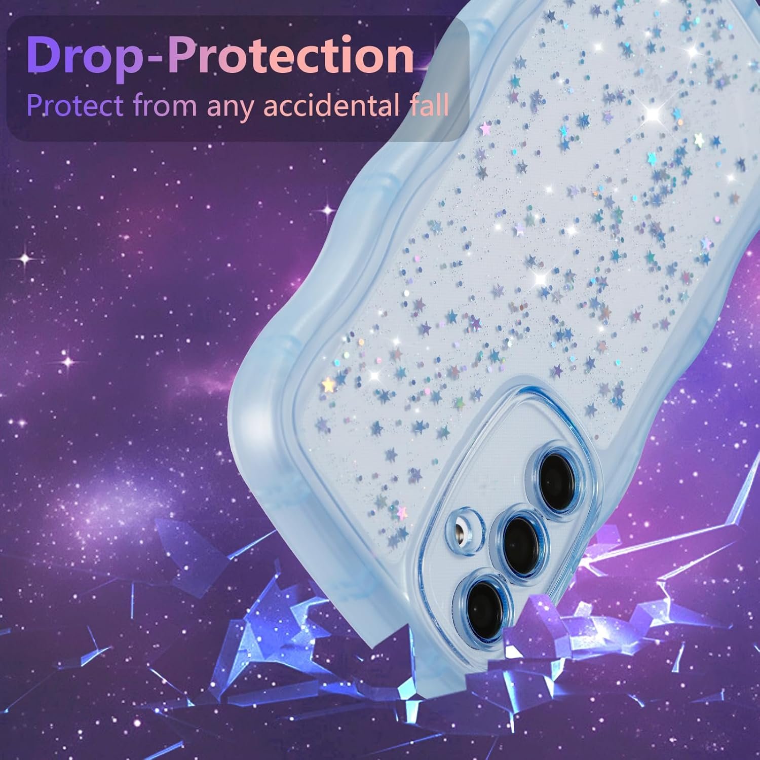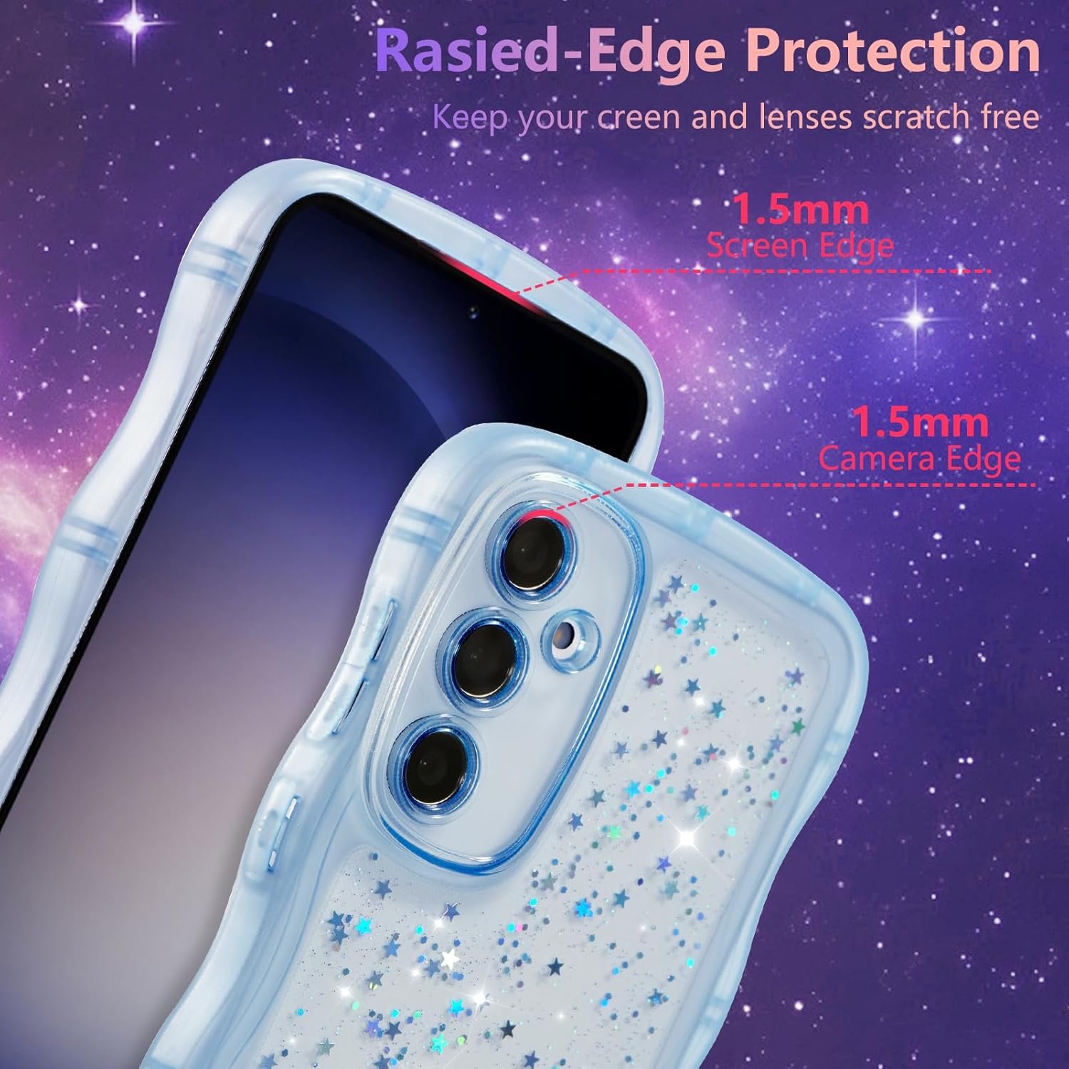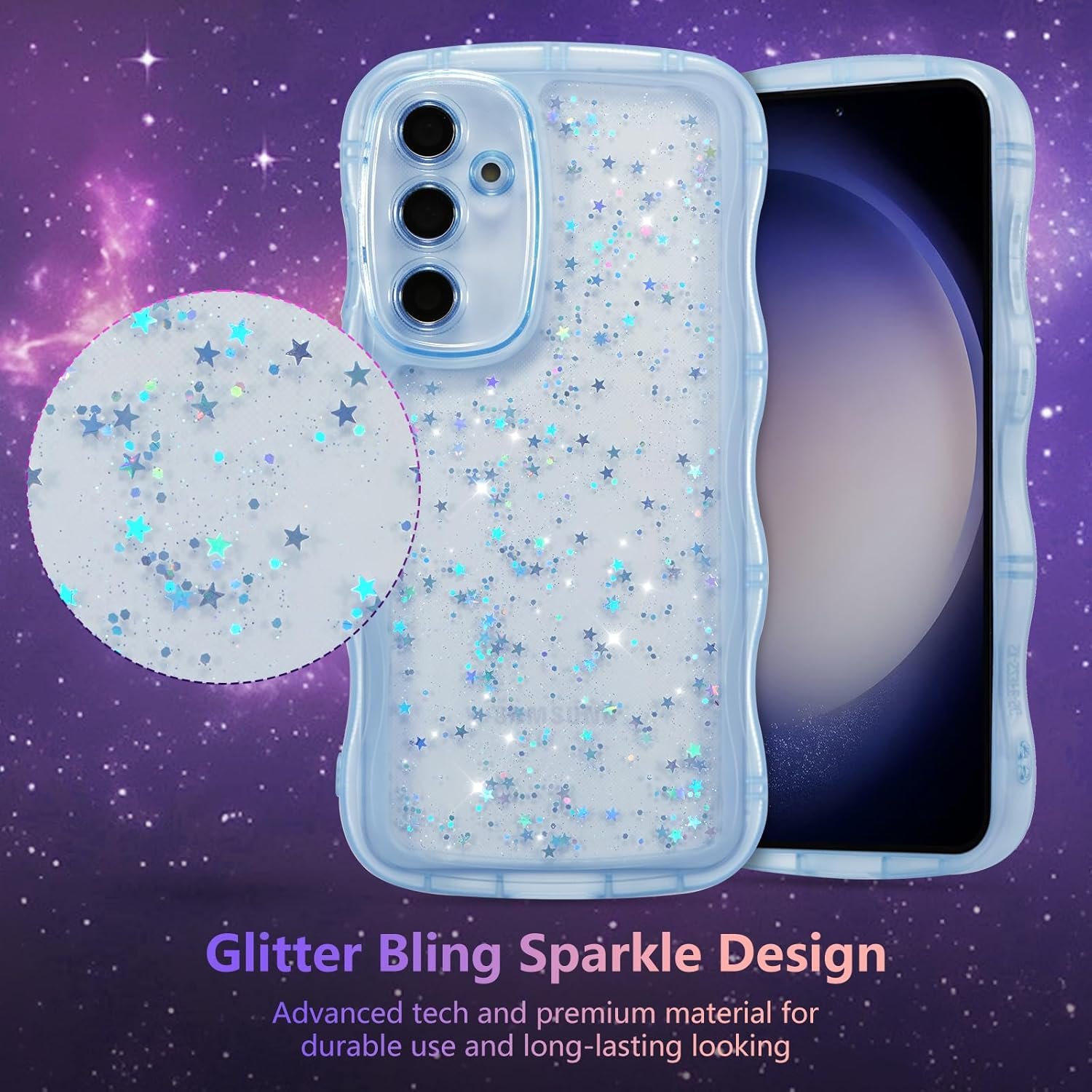 Unique Design: ZTOFERA case for Samsung Galaxy A14 4G/5G features a cute and stylish curly wave edges, with a starry glitter design on the back, making your phone look more fashionable and charming.